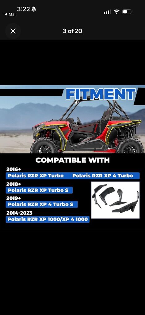 ApplePayExtra wide RZR fenders. Brand new in box. Just went a different direction. Paid $180 on eBay. My loss is your gain.