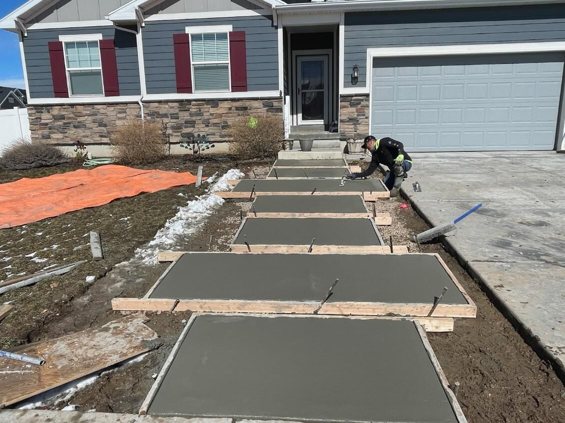 Give us a call to receive a Free quote for your upcoming concrete project! We specialize in any type of flatwork. From RV Pads, Driveways, Sports Pads, Patios, Driveways Extension, Sidewalks, to custom work, Curbing, Footings, Fireplaces, Steps, Walkout Basements and much more! We are licensed and insured. Serving all of Salt Lake County, Utah County, and Davis County. Give us a call to schedule a job walk 801-842-9509