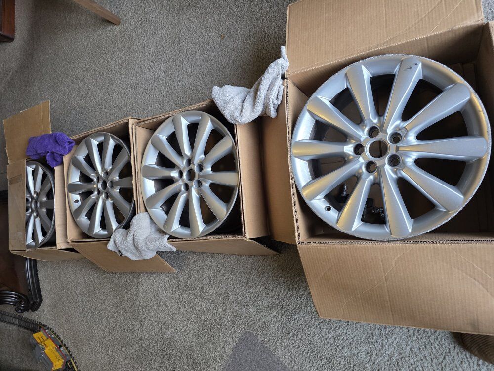 Set of 4 authentic Jaguar rims (stamped), came off a 2013 Jaguar XF 3.0 Supercharged AWD. Pretty beat up, previous owner didn't miss a curb.