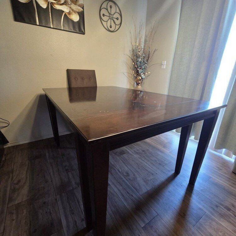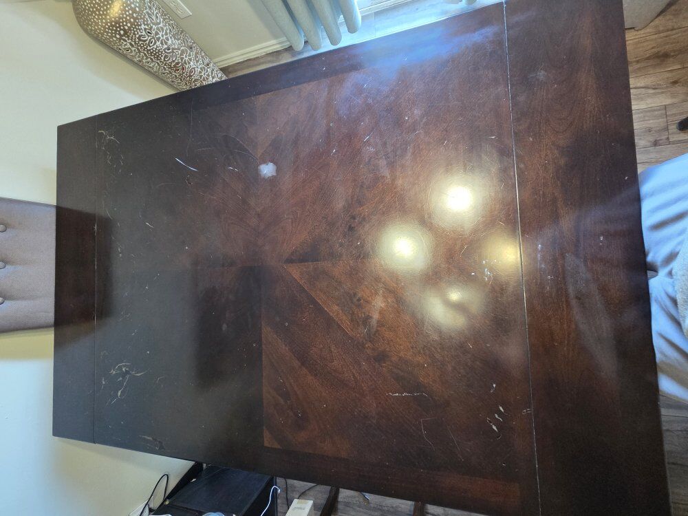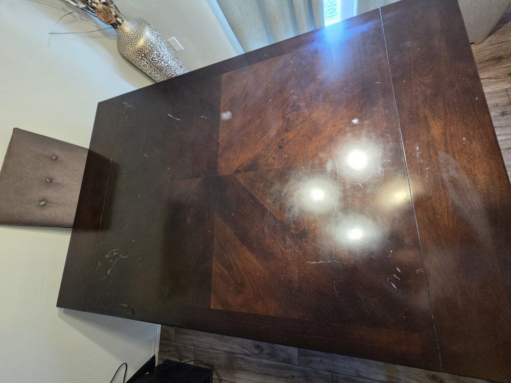 It is great as is, with all the character of being in a loving home, or could totally be refurbished to make a perfect dining table the way you want it to look.