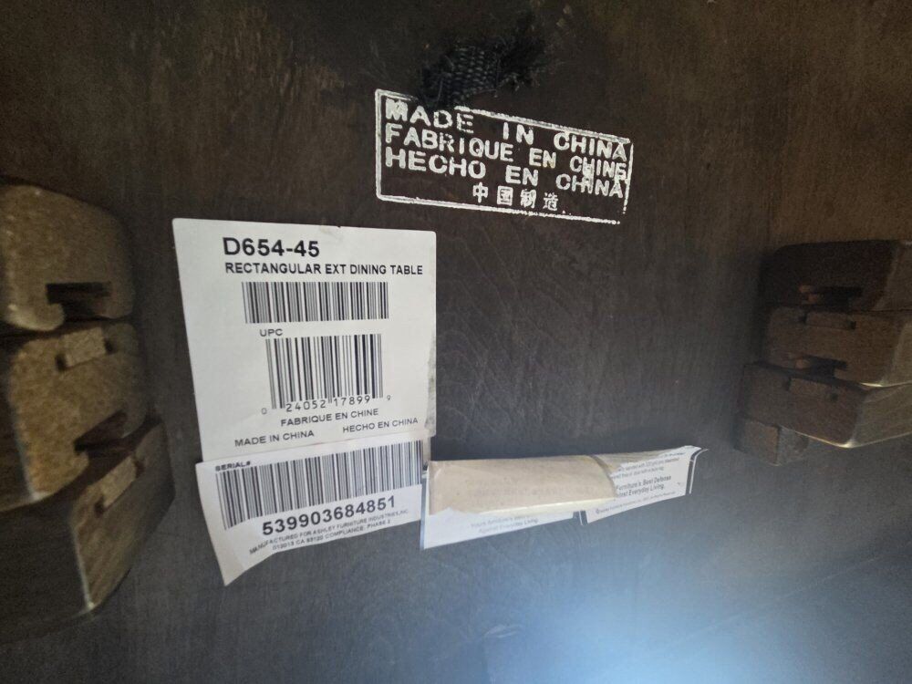 It has only had 2 owners. It is very nice sturdy wood table that can be extended.