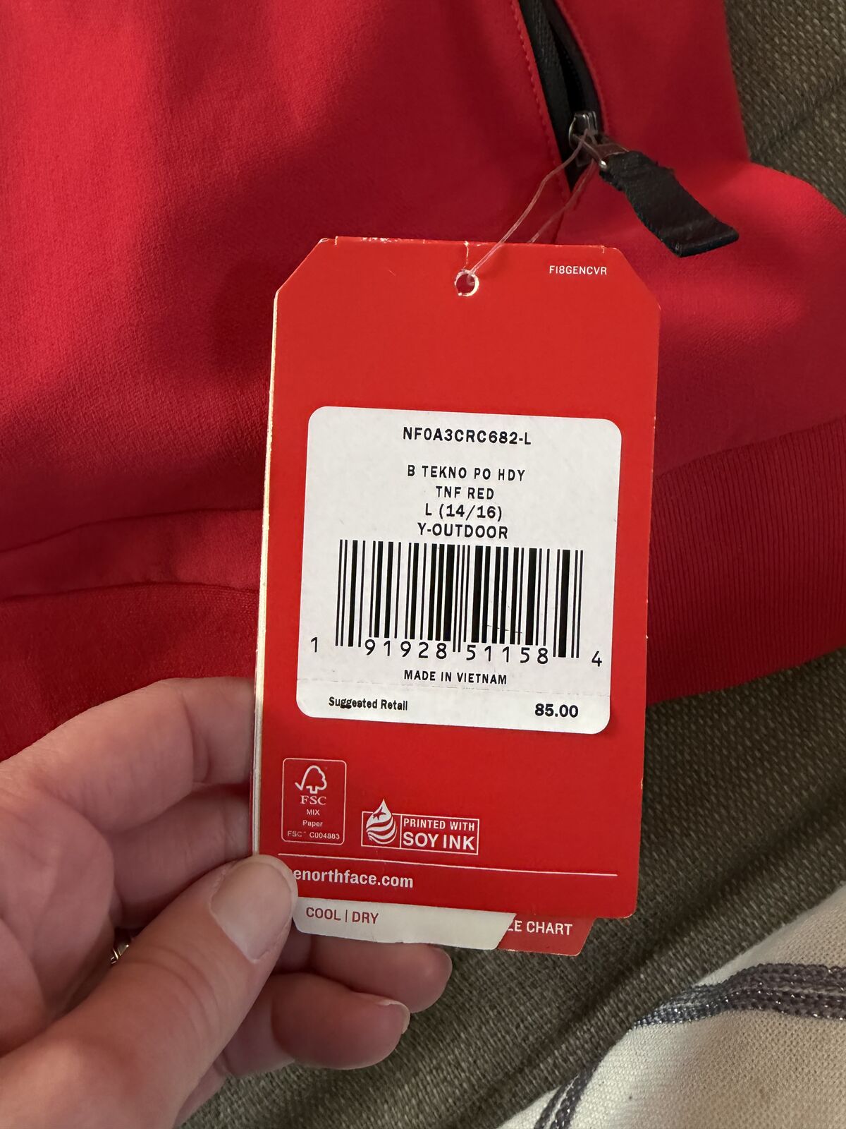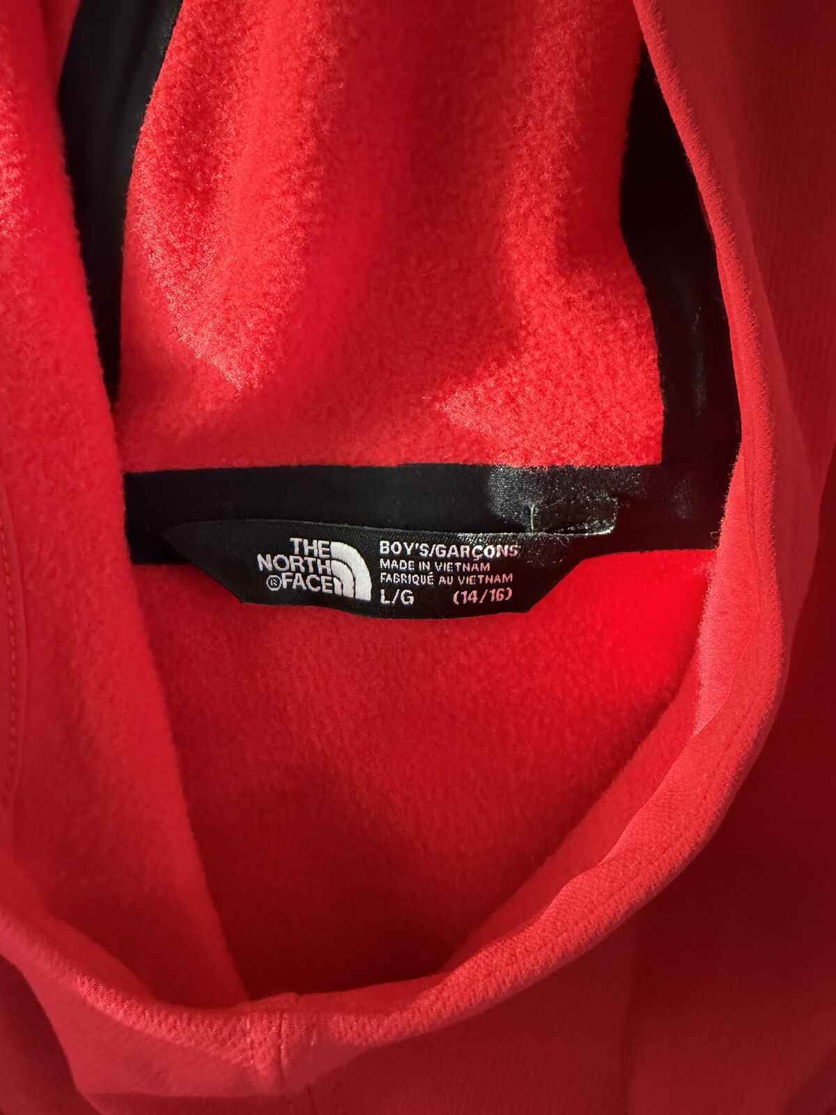 This is a brand new North Face Jacket. Boy's size Large 14/16 and it's red. It's never been worn, it was in the back of my son's closet and we all forgot about it. It's too small for him now. The same jacket sells on north face renewed for $43 as a used item. This brand new with tags.
