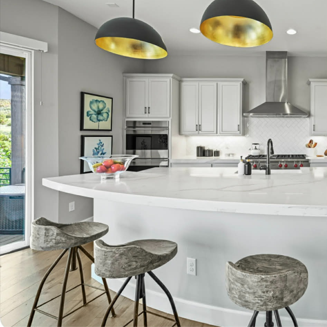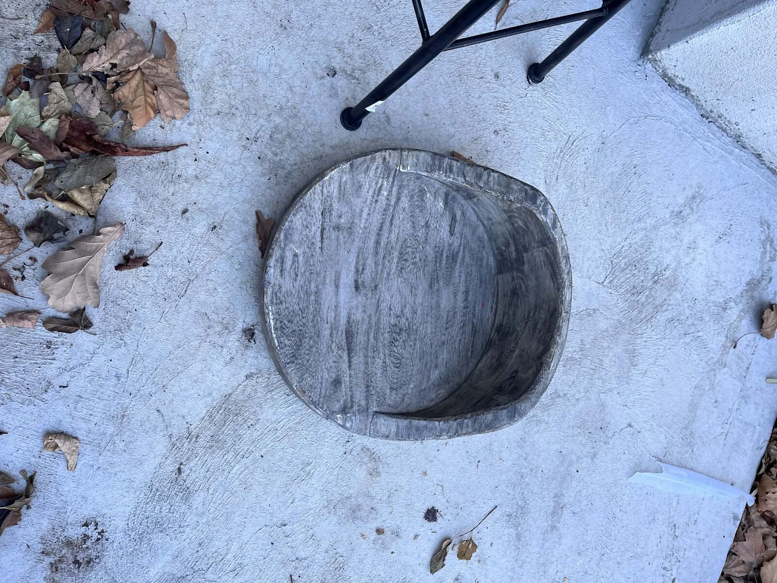 The seats have a weathered gray finish that mimics reclaimed wood, perfect for adding an industrial‑chic vibe to a kitchen counter or bar area.