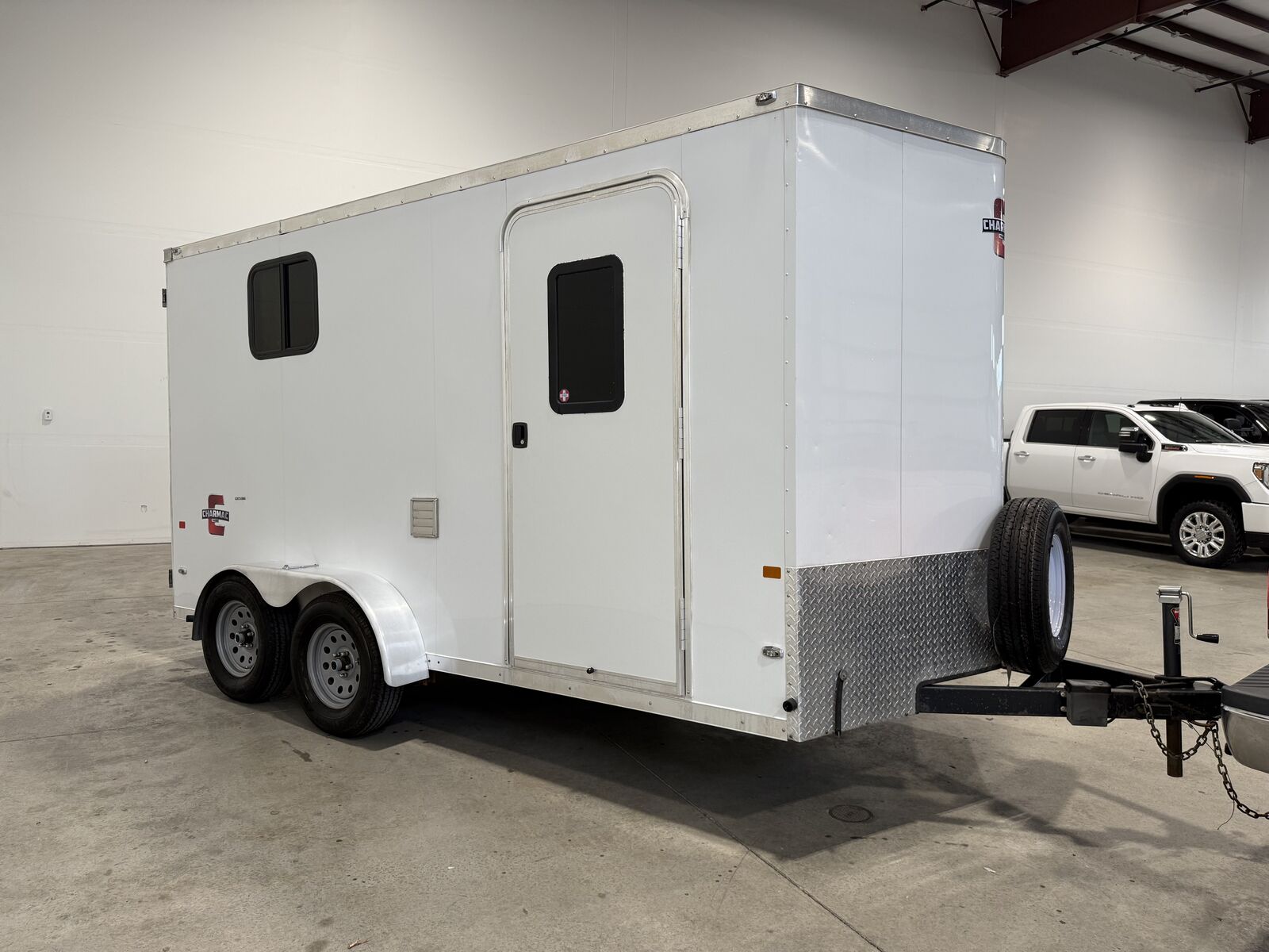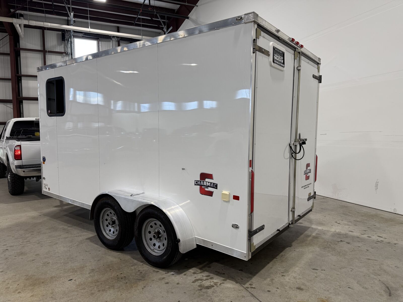 UTAH VALLEY TRUCKS IS PLEASED TO PRESENT THIS CHARMAC ENCLOSED TRAILER TURNED INTO RV! TONS OF STORAGE SPACE WITH CABINETS AND UNDER THE BED STORAGE! HVAC UNIT! WORKING SINK! MINI FRIDGE! FULL INTERIOR LIGHTS! OVERHEAD VENT FAN! 2 WINDOWS WITH BLINDS PLUS WINDOW ON ENTRY DOOR! TOWS AMAZING! COME CHECK IT OUT!
