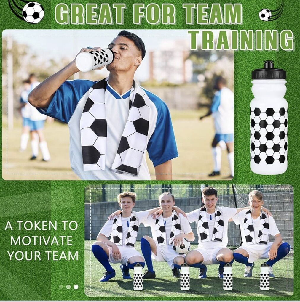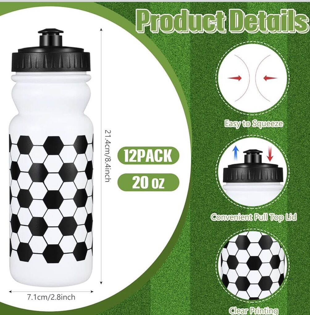 • Leak-proof Design: each sport water bottles bulk are designed with a leak-proof design to prevent spills, keep it tight and prevent leaks when traveling or drinking quickly. The cute soccer patterns on these cups are also eye catching See Less