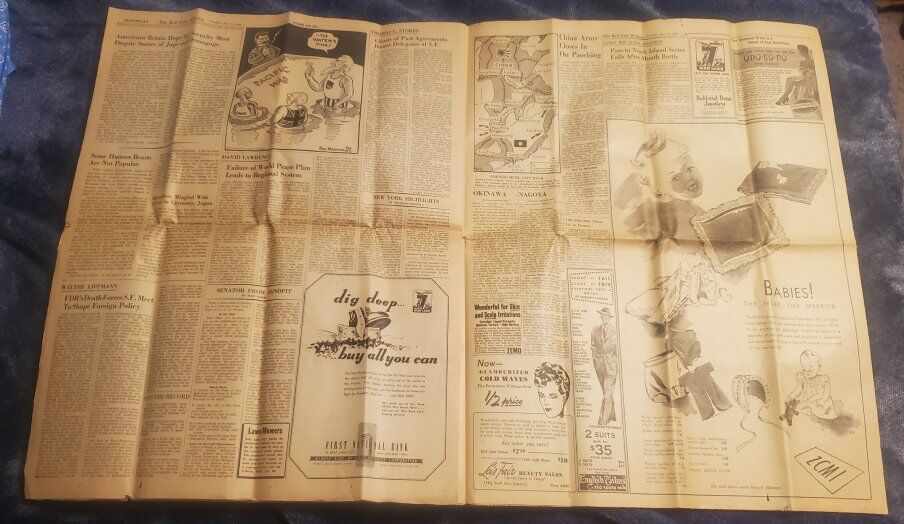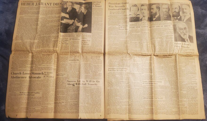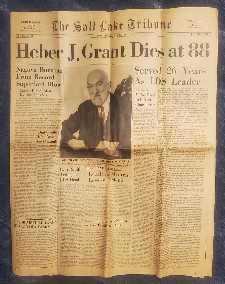CashAppOriginal 12 page Salt Lake Tribune newspaper in great condition. Dated May 15th, 1945, announcing the death of the 7th President of The Church of Jesus Christ of Latter Day Saints.