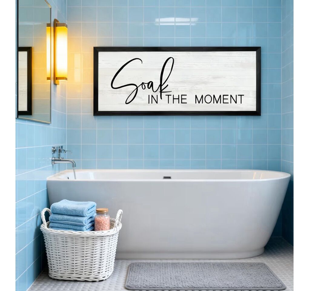 ApplePayBrand New! 12”x32” Framed saying “Soak in the Moment “ Retails for $45 Pick up in Centerville 32x12 Encouraging Words Washing room quote wall decor Wall hanging adopt minimalist letters on the white background, showing your passion for life, adding a touch of elegant, funny and classic beauty to your space. High-quality Solid WoodThe aesthetic long sign for playroom is handcrafted of high-quality solid wood with a distressed finish, white text design, and black solid wood frame, which is simple and durable, not easy to fade and deform, and can accompany you and your lover for a long time, witnessing the sweetness of love. Easy Installation Bathhouse wood sign is equipped with plastic expansion and self-tapping screws, which will take you less than ten minutes to install it on the wall. Wide ApplicationThe inspiring blessed saying artwork wall decorations can be served as housewarming gift, birthday gift, or thank-you gift in above the bathtub, above the laundry sink, above the washing machine / washer/dryer, bathhouse, washing, shower, laundry and wash Room, which would be a unique and beautiful landscape on the wall of your home. Perfect Blend of House Styles Wooden sign can perfectly suitable for all kinds of home styles, which can be perfectly combined with everything from minimalist mid century modern homes to french country coastal farmhouses or seaside lake house to create a unique and time-honored wall charm.