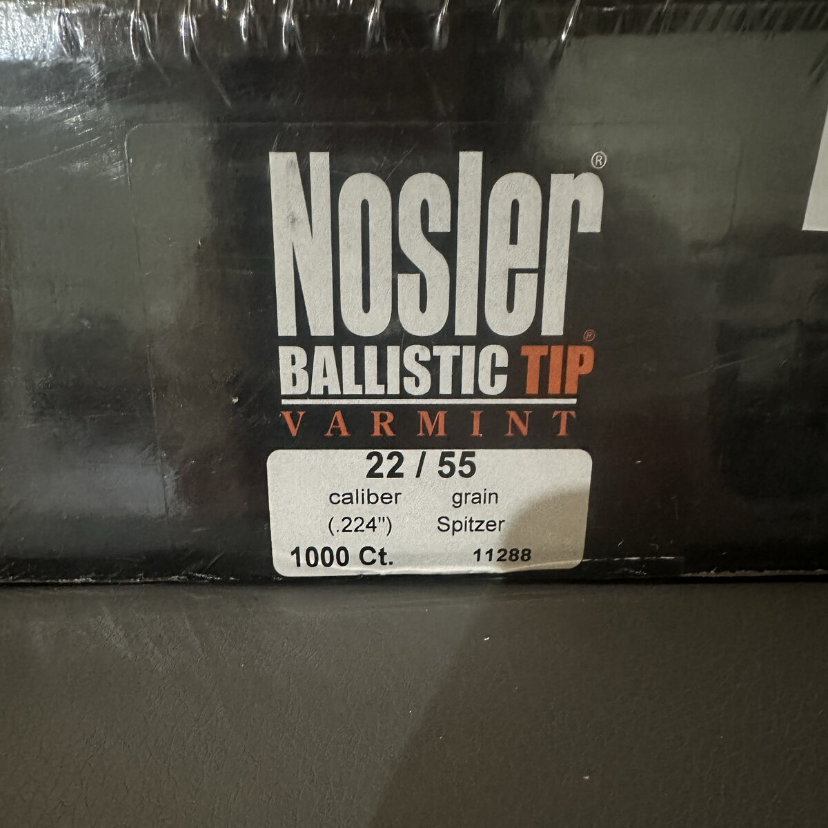 VenmoNew sealed box of 1,000 Nosler Ballistic Tip Varmint .22 cal 55 grain Spitzer this is a sealed box must pick up in Spanish Fork or Payson