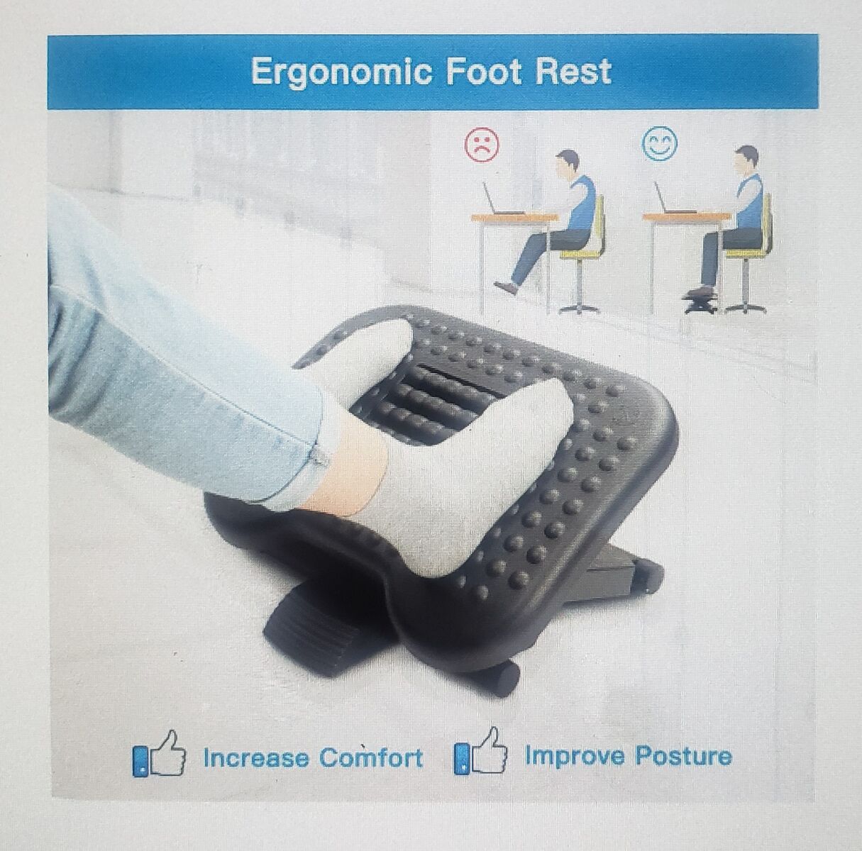 Buy This New Adjustable Height Ergonomic FootRest with Massage Rollers For Yourself Or As A Nice Gift For Someone Who May Need It.