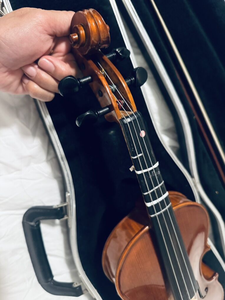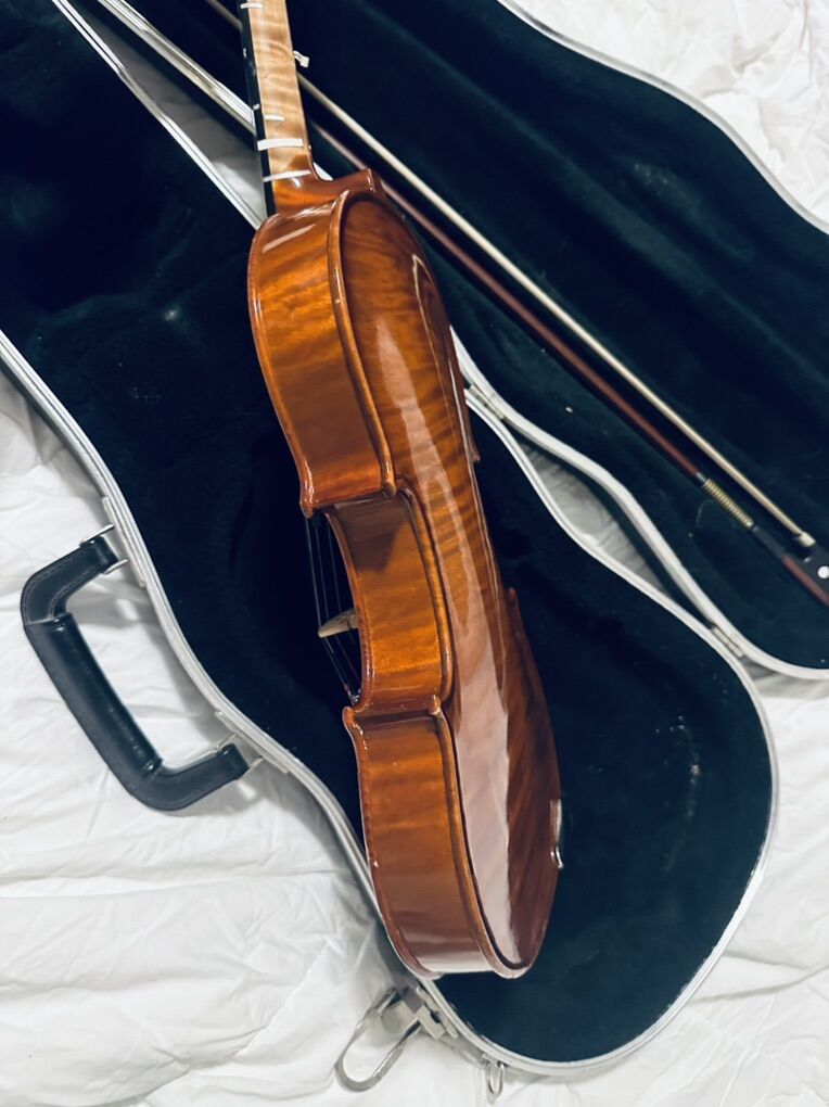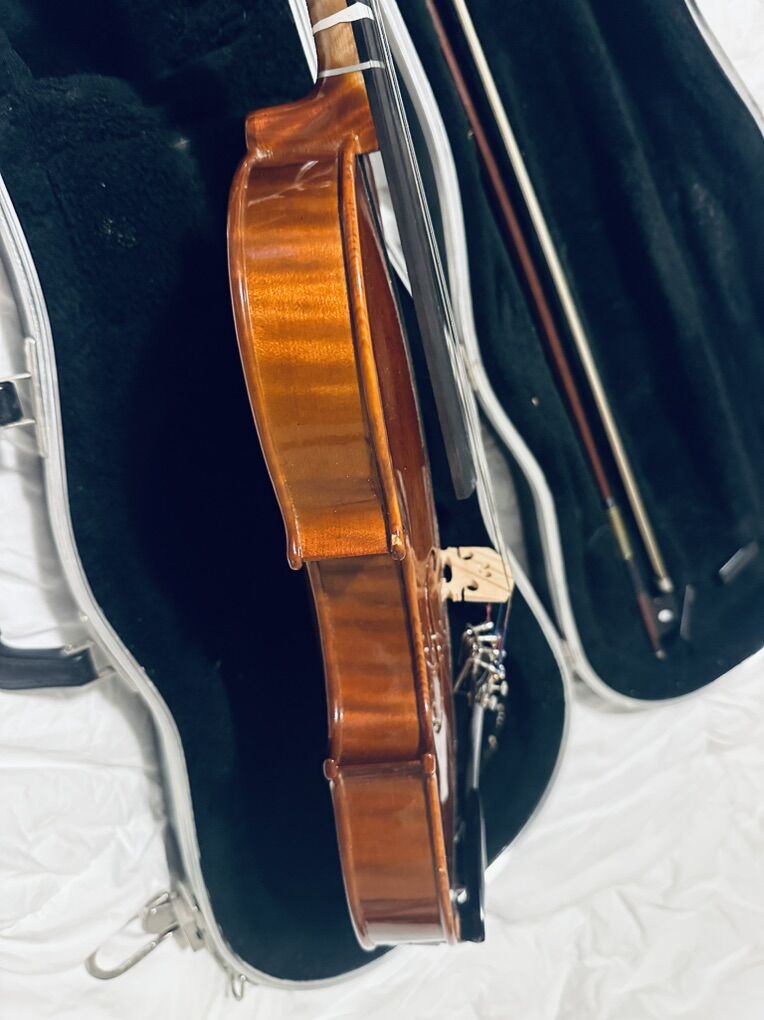 VenmoIt’s a beautiful violin. My daughter upgraded to a full size. It comes in a case with a bow, No shoulder rest. Thank you!