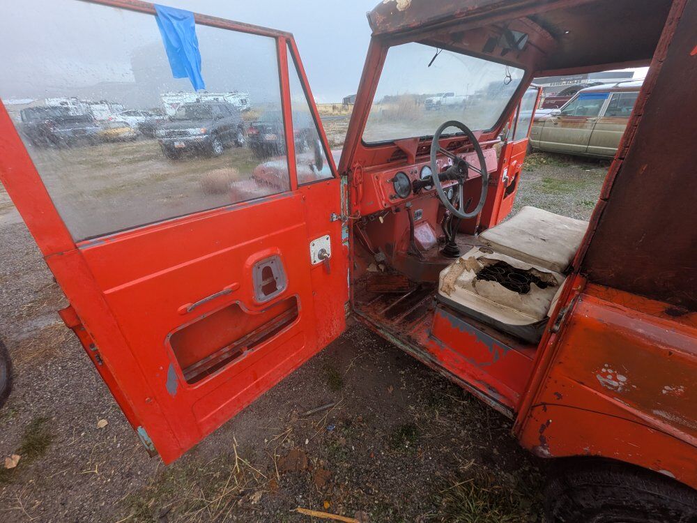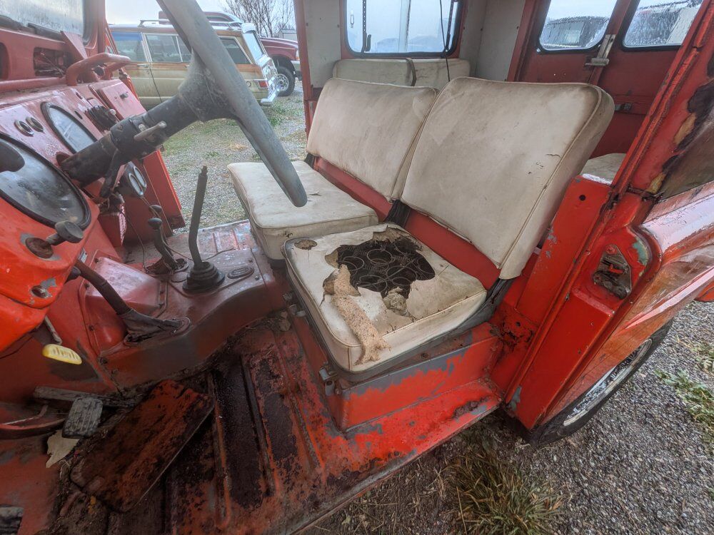 The orange one is the donor with the straight 6 and trans. very nice condition front seat and jumper seats.