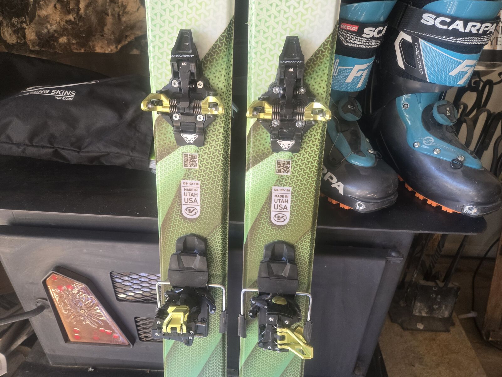 VenmoVoile hyper charger skis 164cm, dynafit bindings, skins and scarpa 260 boot.