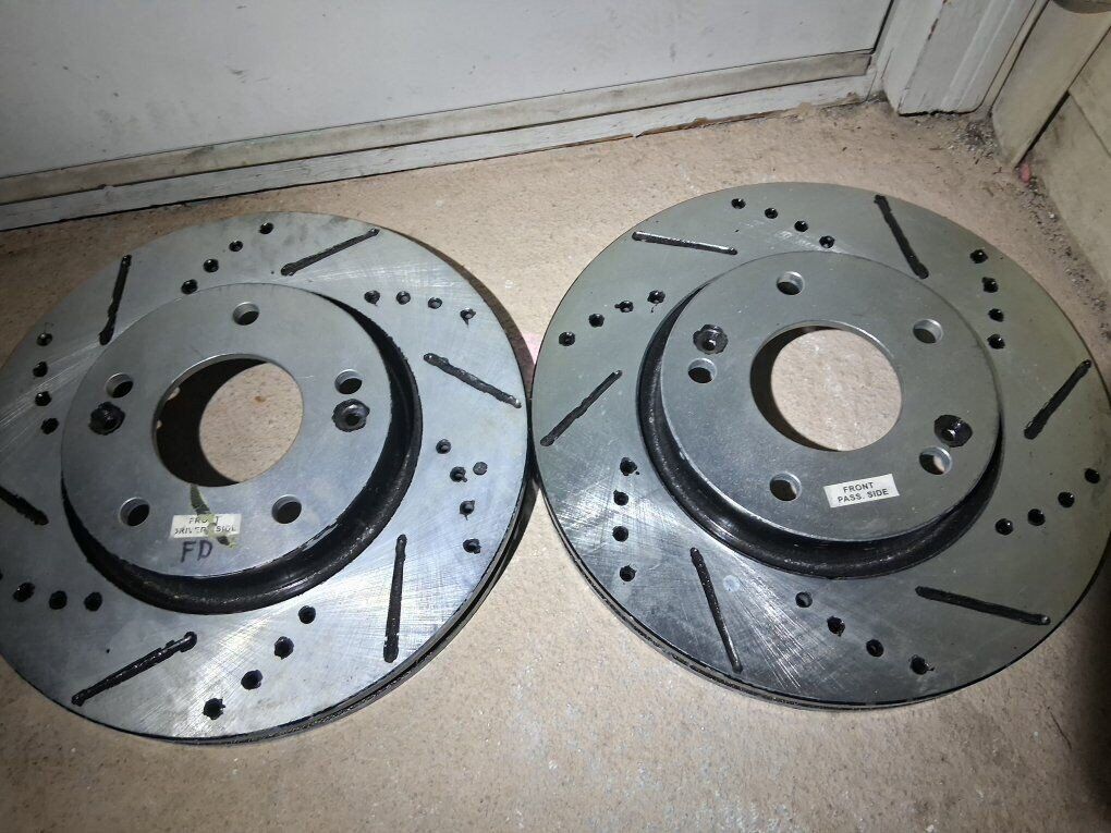 brand new never used front rotor kit for 2001-2008 tiburon I painted common Rust areas wish heat resistant black paint includes: both front rotors,new carbon ceramic pads, new grommets for giuld pins, new clips for calipers, and last an unopened packet of break grease. they have been in storage and I no longer have the car 75$ obo!