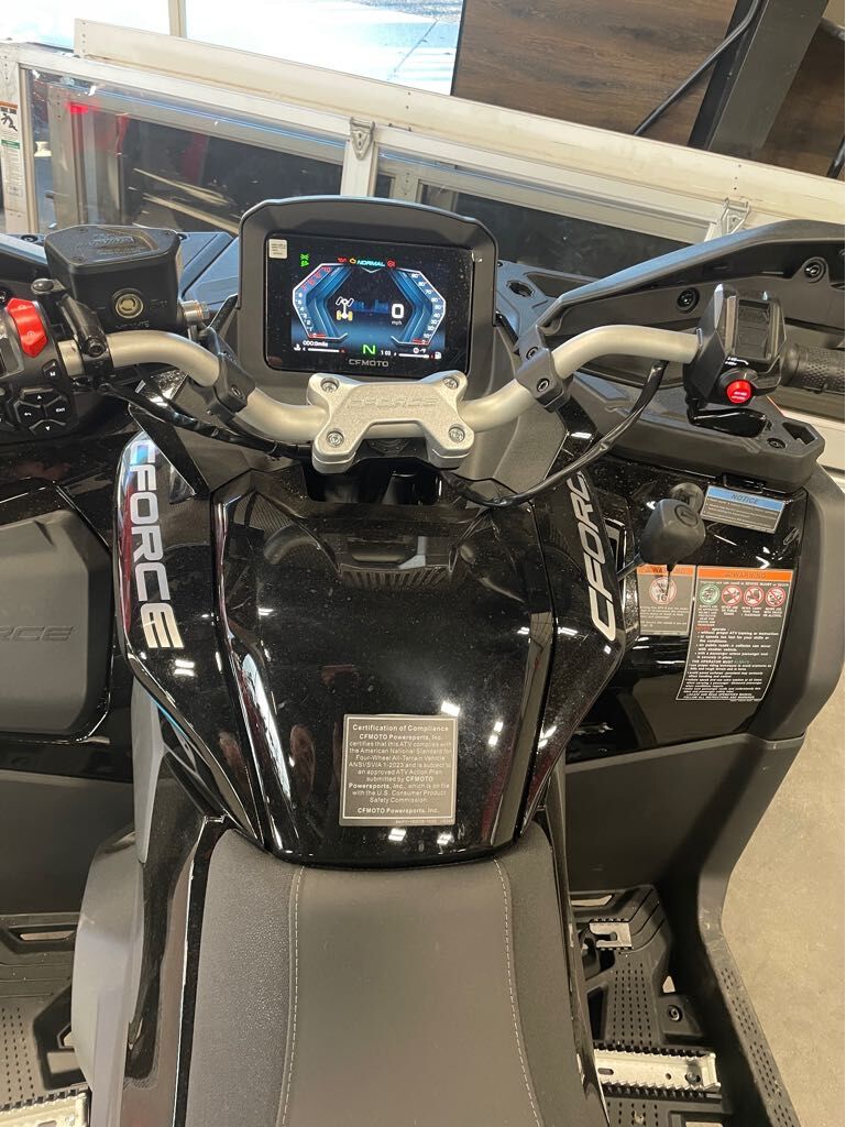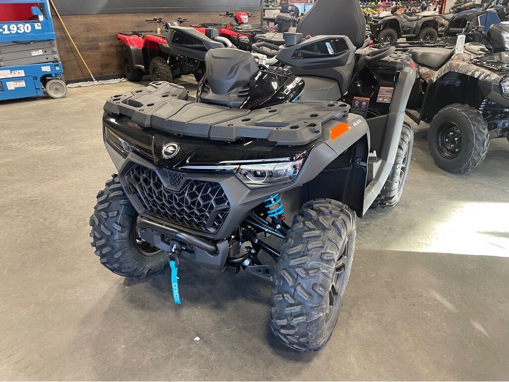 The CFORCE 1000 Touring redefines what a top-tier ATV should be. It’s ferocious—with a new 963cc V-Twin engine pumping out 84 hp and 62 lb-ft of torque—and refined all at once. The ride-by-wire throttle, selectable ride modes, and OmniDrive CVT deliver smooth, responsive power. The fully adjustable gas shocks with piggyback reservoirs let you fine-tune the suspension for any condition, while the premium 2-up seat and passenger backrest bring long-haul comfort into the backwoods. The 7” TFT display with Bluetooth keeps you connected, and four-mode electronic power steering ensures confidence at every turn. This is what happens when you engineer brute force with manners. Smooth. Controlled. Capable. And equipped with every feature you could want as standard. Engine Type: V Twin Displacement: 58.7 cu. in. (963 cc) Cylinders: 2 Engine Cooling: Liquid Fuel System: Gas Starting System: Electric Front Travel: 9 in. (228.6 mm) Front Suspension: Independent A-Arm Front Brake Type: Hydraulic Disc Front Tires: CST 27 x 9 R14 Rear Suspension: Independent A-Arm Rear Travel: 9 in. (228.6 mm) Rear Brake Type: Hydraulic Disc Rear Tires: CST 27 x 11 R14 Frame: Steel Dry Weight: 975 lb. (442.3 kg.) Towing Capacity: 1800 lb. (816.5 kg.) Fuel Capacity: 6.9 gal. (26.1 L) Ground Clearance: 12 in. (304.8 mm) Machine Dimensions (LxWxH): L: 92 in. (2336.8 mm); W: 50 in. (1270 mm); H: 57.7 in. (1465.6 mm) Wheelbase: 58 in. (1473.2 mm) Drive Train: Continuously Variable (CVT) Speedometer: Standard Tachometer: Standard Odometer: Standard