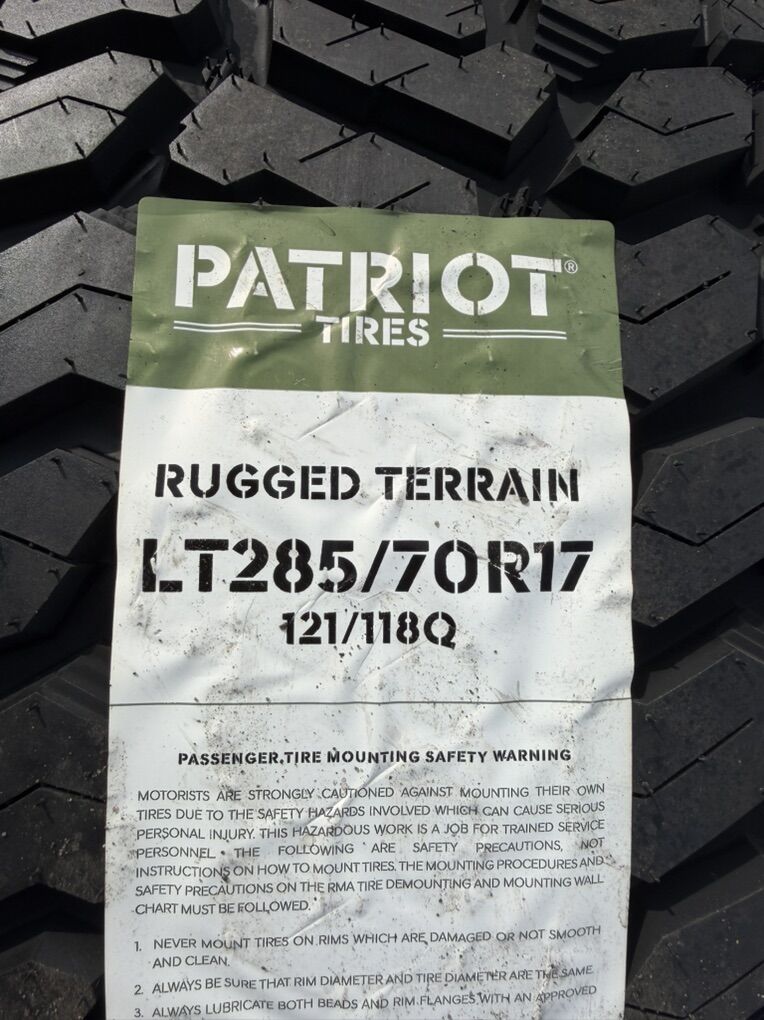 Tires are Patriot R/T 285/70R17 which is roughly 33x11x17 10 ply Load Range E