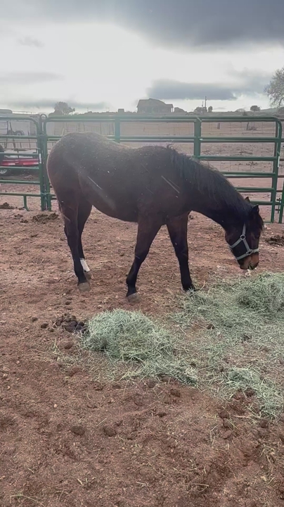 PEPTO STARLIGHT KAT, known as “Flash,” is a solid dark bay registered Paint filly with a short white sock on her left hind foot. She is beautifully put together, stocky and well-built with a babydoll head and carries proven cow horse bloodlines. The prestigious HIGHBROW CAT and PEOPTOBOONSMAL are on her papers. Her dam is a minimal-white grullo Paint mare with her pedigree going back to GRAYS STARLIGHT.