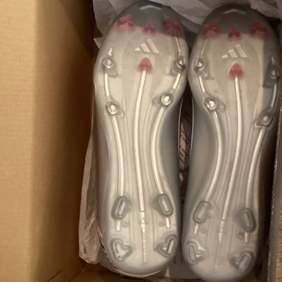 ApplePayThese league cleats have a lightweight synthetic upper for durability and comfort with every move. A textile lining adds a soft feel for extended wear. Messi-inspired design combines tailored fit and engineered details for precision and speed. F50 DESIGN: The most modern and performance-oriented technology integrated into the design, featuring a refreshed upper graphic for a lightweight sensation and engineered details to unlock game-changing speed PATTERN DESIGN: Made for mobility with a design tailored to Messi's preferences in fit and performance SYNTHETIC UPPER: Lightweight synthetic upper for durability and comfort MULTI-GROUND SOCCER OUTSOLE: Show your skills on multiple surfaces with a versatile outsole made for artificial grass, firm ground and hard ground. Size: Mens 6 1/2, women’s 7 1/2. These cleats do come with laces.