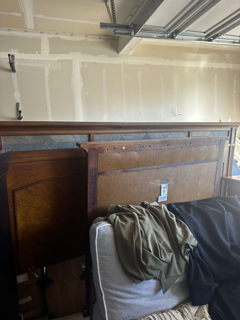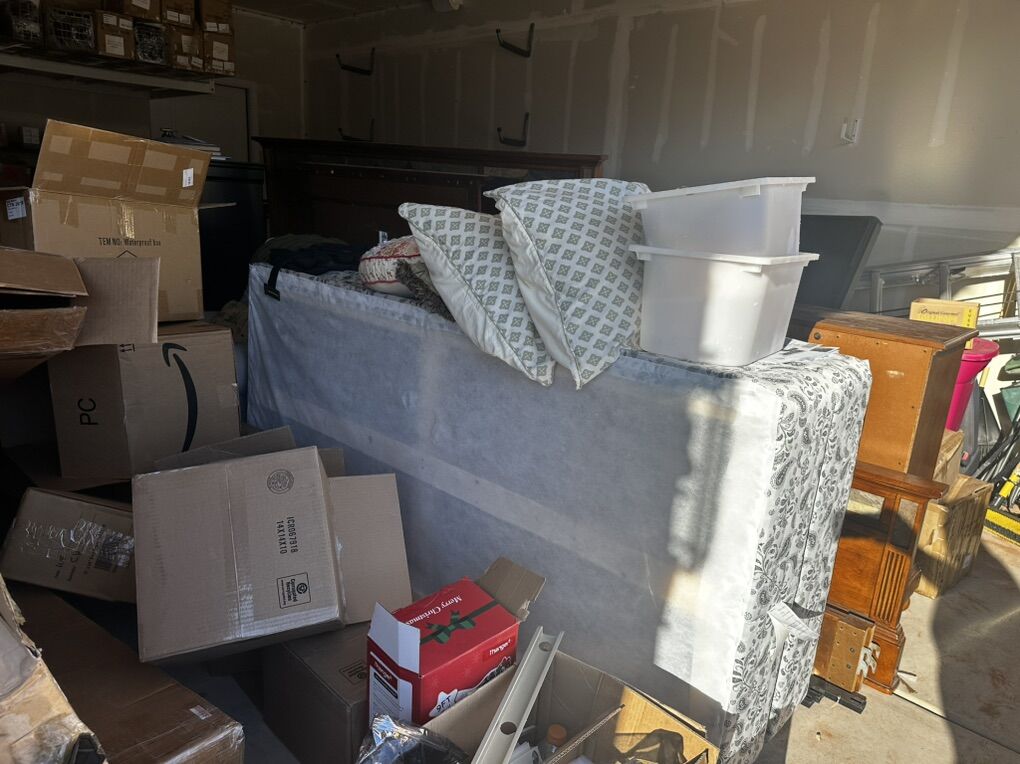 King bed with mattresses White chair- some damage