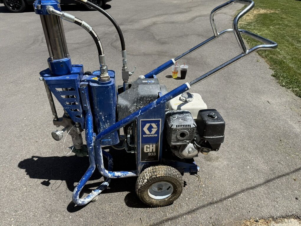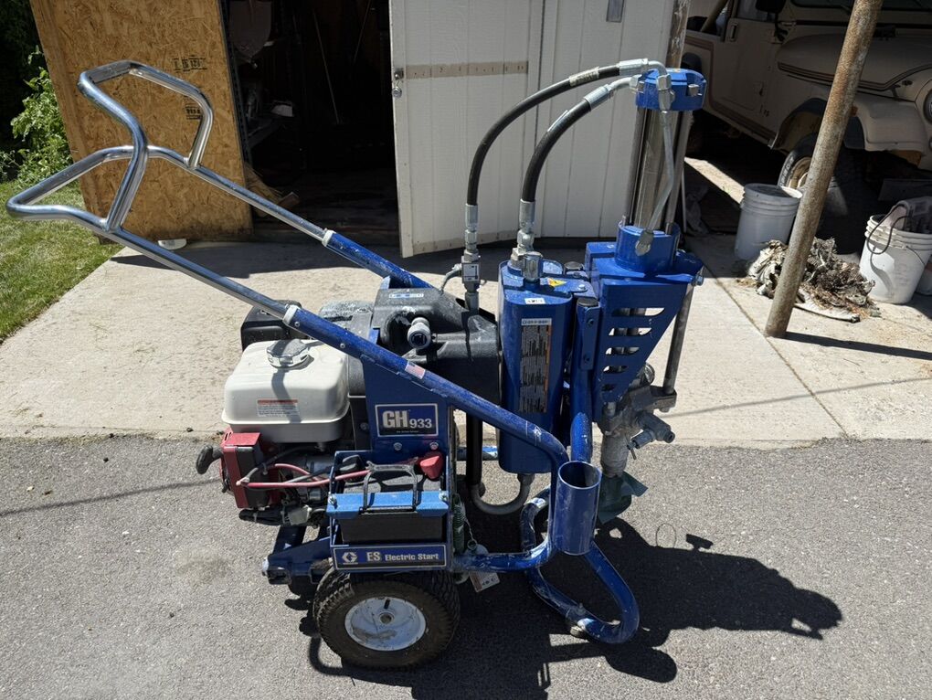 Graco GH933 sprayer. I used it on one big roofing job spraying silicone. Comes with 250’ of hose and a 5 to 1 pump that fits in a 50 gal drum. Worked great on the job I used it on. Was cleaned after every job with mineral spirits.