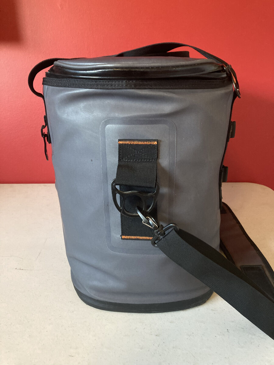• Made from-easy-to-clean 600D coated material • Spacious interior fits 36 cans plus ice • Dual bottle openers • 2 sets of daisy chain attachment points • Front accessory pocket • EVA compression molded base • Removable neoprene-padded shoulder strap • Holds 30 lbs of ice • Interior lining is 100% heat sealed but the zippers are NOT leak-proof