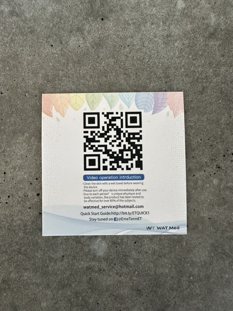 Specifications: • Brand: EmeTerm • Model: YF-ZTY-E1 • Principle: TEAS targeted neuromodulation • Designer: Canada • Age Range: 6 years of age or older • Certificate: FDA, CE, TGA, HC, ISO