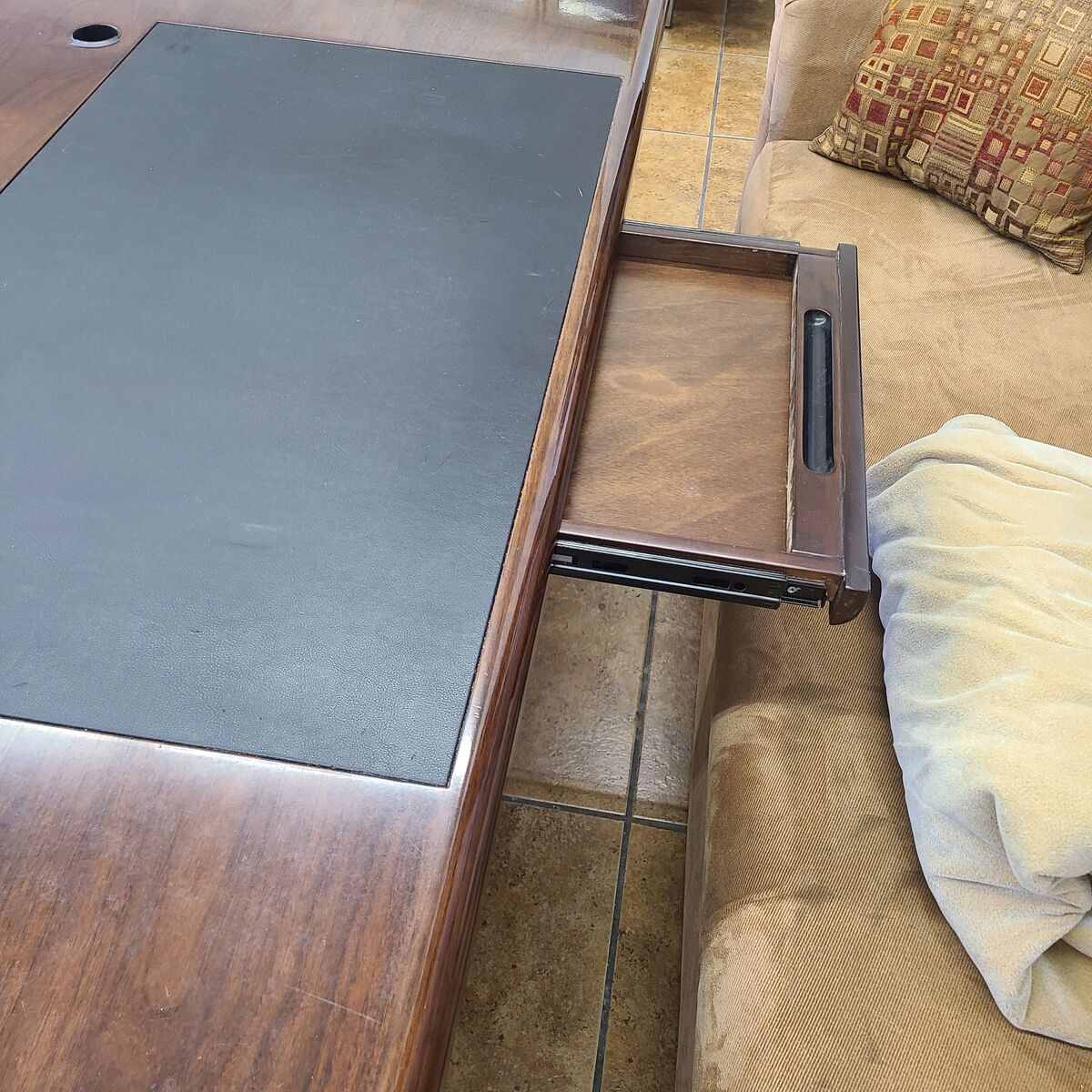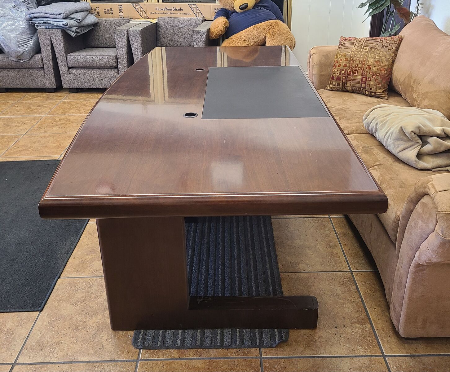 VenmoVery nice wooden executive office desk. Has some minor wear but still looks beautiful. Breaks down into 2 parts. 30.5" tall, 42" wide and 86" long. Has a pull out drawer in the front that slides in and out smoothly. $400 obo