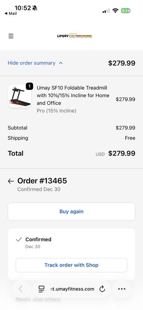 Product dimensions: The dimensions when unfolded are 115 x 59 x 100 cm, and when folded, it is only 12 cm thick, so it can be conveniently stored in any corner. With a weight of 40LBS and a maximum load of 350LBS, it is suitable for users of a wide range of heights. Product link: https://umayfitness.com/products/umay-sf10-foldable-treadmill-with-10-incline?variant=51453459333439