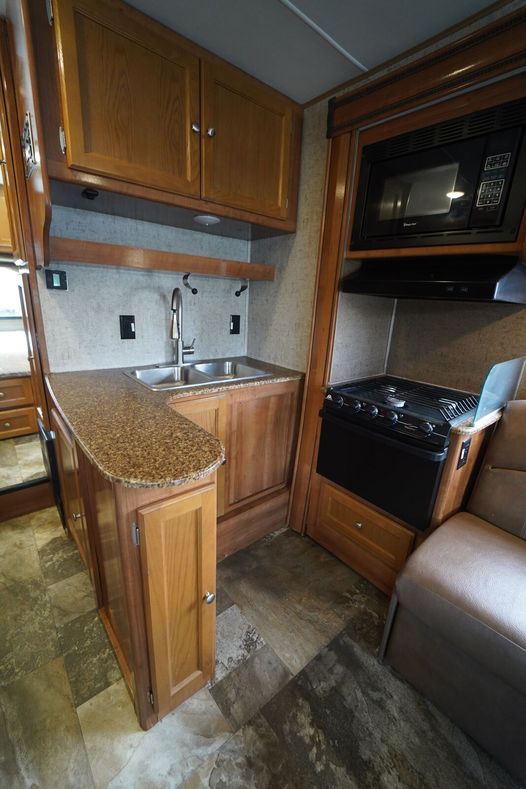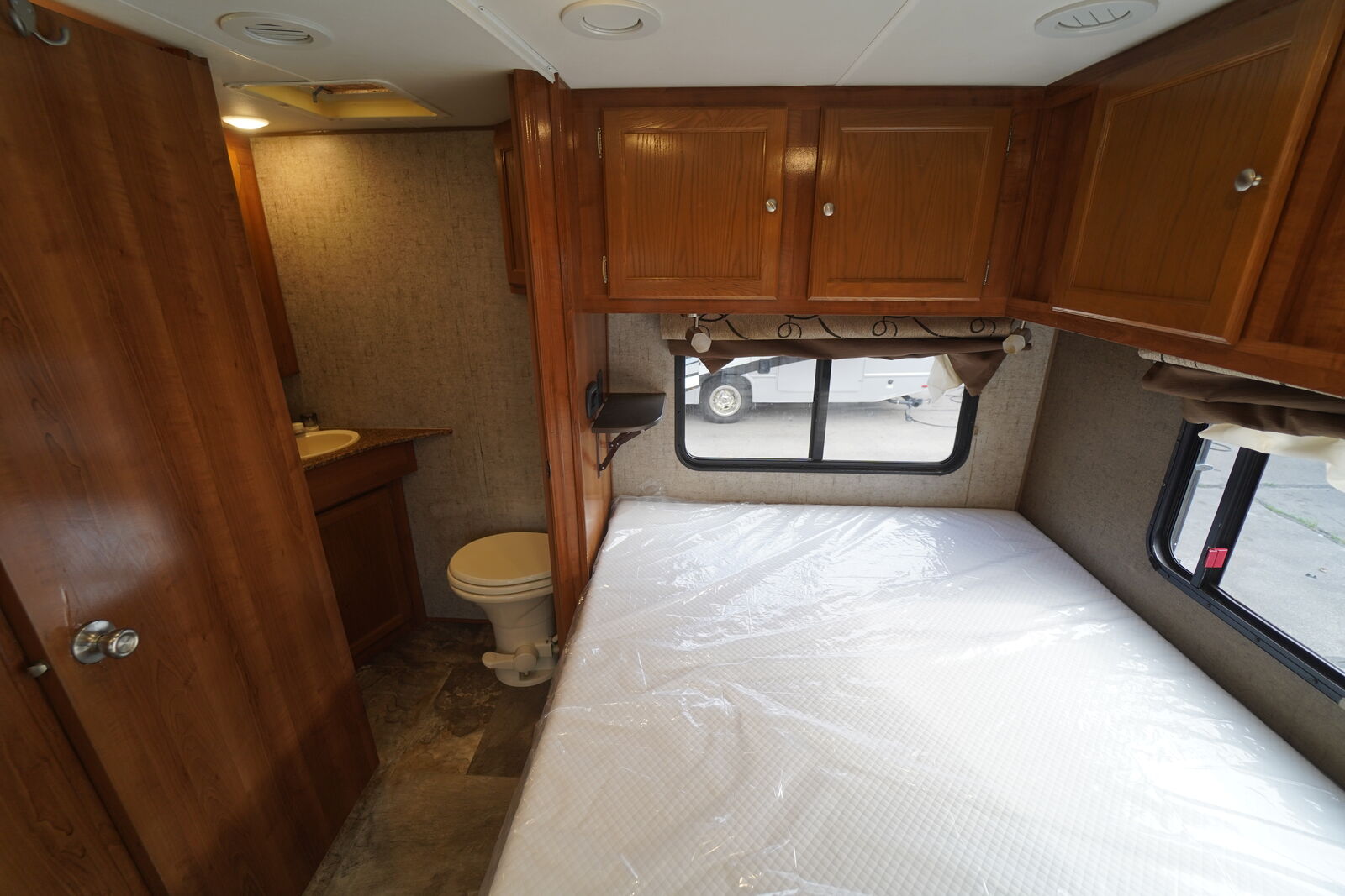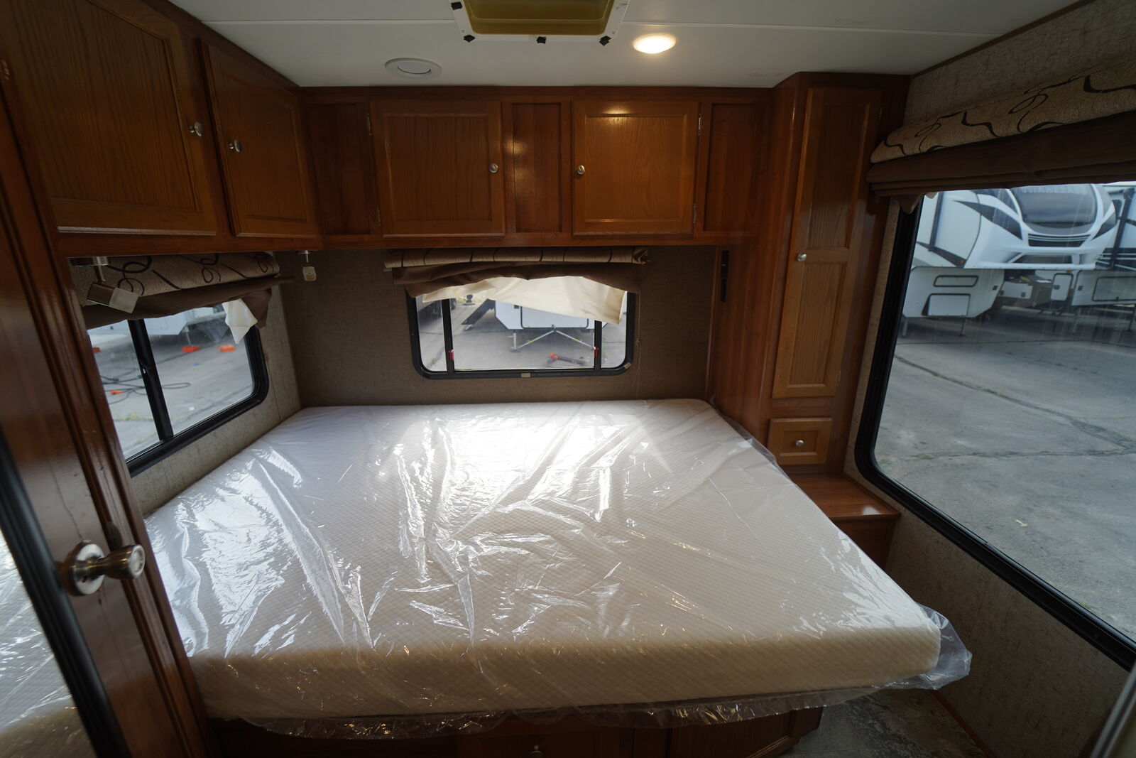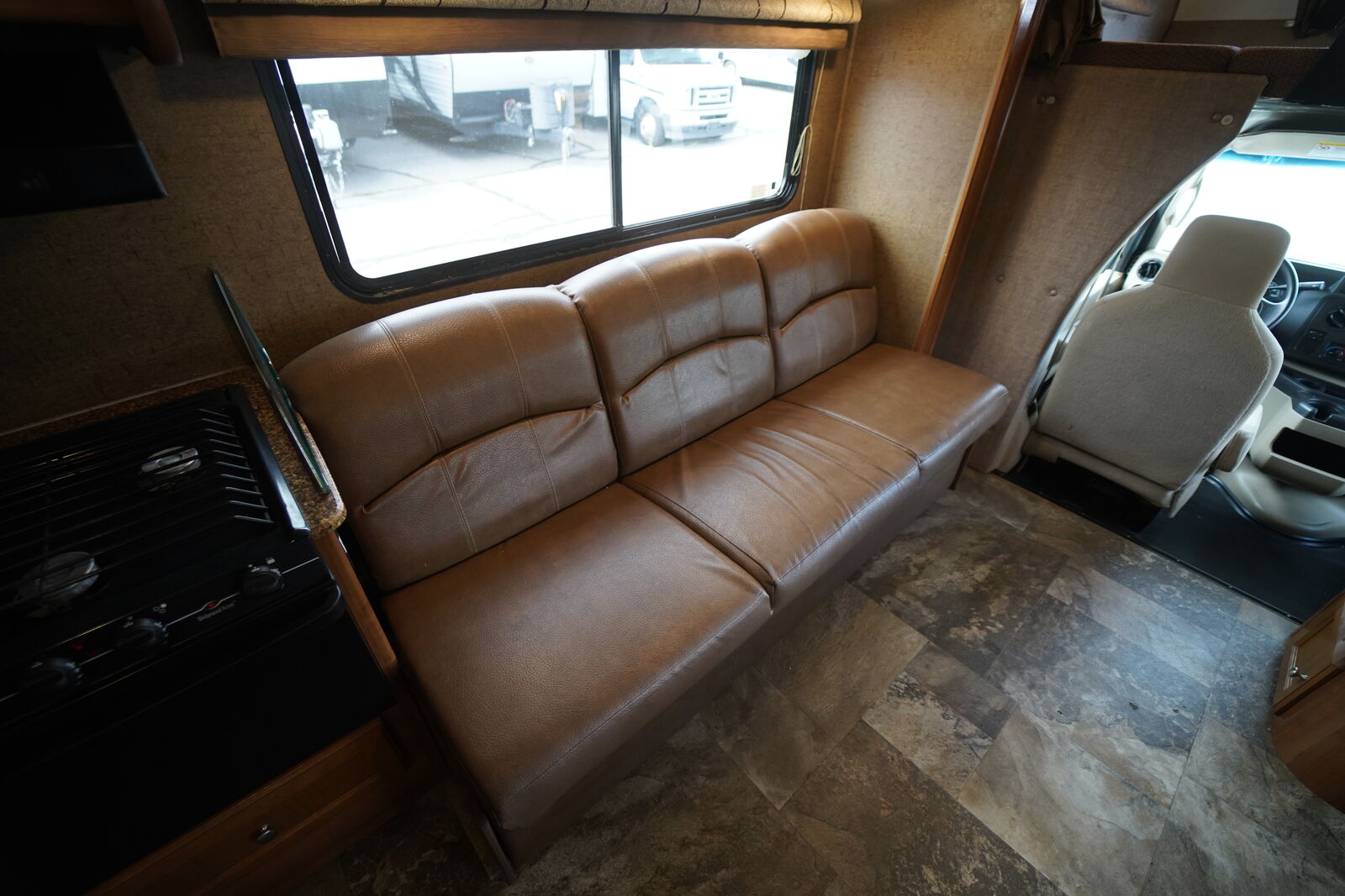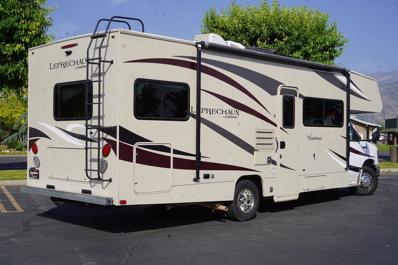 LOVE LOVE LOVE This floorplan! 28 with SLIDE is short enough to get you in all the tight spots, but PLENTY LARGE for a rear queen suite, Only 41k mi! Sleeps 8! Opposing sleeper sofa and sleeper dinette makes for a spacious main living space! The front overhead cab bunk is BIG and also features a FORWARD FACING OVERCAB WINDOW!!! This Southern California Leprechaun has got it all! MASSIVE rear exterior storage RESIDENTIAL SIZE QUEEN BED, glass enclosed shower, HUGE WINDOWS, big slide, spacious kitchen with gas/electric refrigerator, onboard ONAN generator with LOW HOURS, 6 BRAND NEW TIRES and MORE!!!