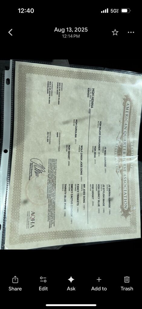 Henna is a standout addition to any program and a serious prospect for the roping pen. She has all the pieces to be a money-maker, whether you’re looking for a future performance horse or a long-term broodmare investment.