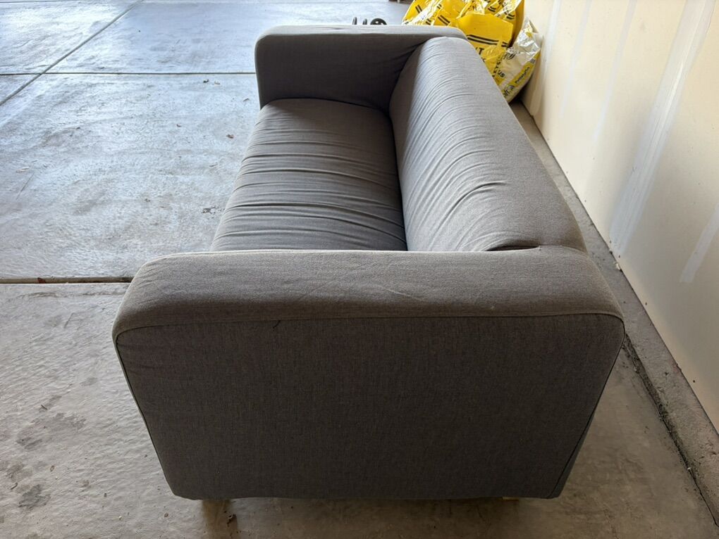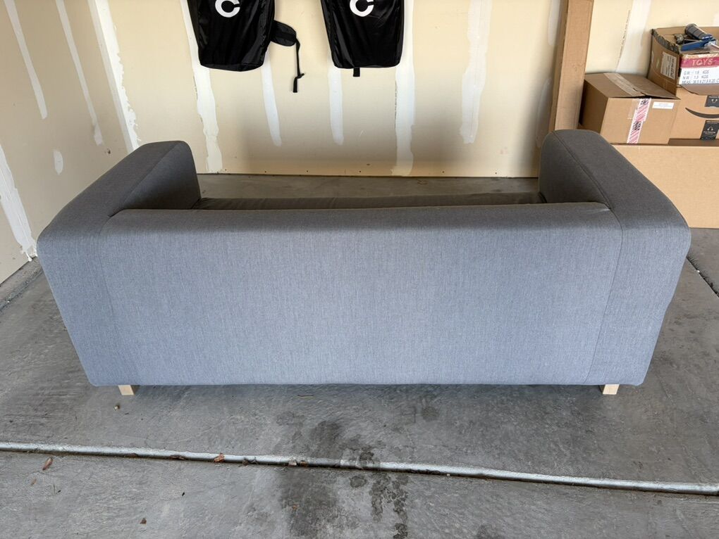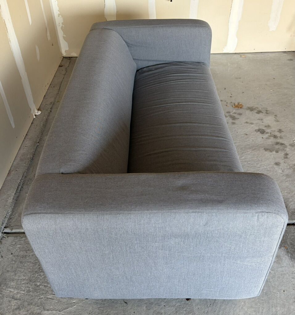 VenmoIKEA Light Gray loveseat with sandy brown legs. Durable metal springs in the seat give the sofa a springy comfort, allowing you to sit, relax and enjoy it for many years. The cover is easy to keep clean since it is removable and machine washable. We just replaced the cover and legs so they are brand new. We just had a baby and no longer have room for this couch. I recommend a truck bed or hollowed out van for transportation. Let me know if you have any questions.