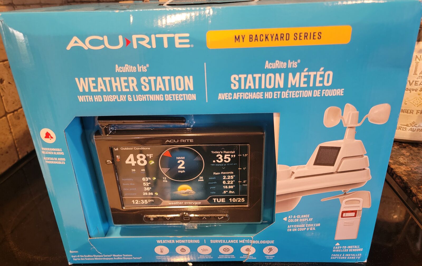 New in Box AcuRite Iris (5-in-1) Weather Station for Indoor/Outdoor Temperature and Humidity, Wind Speed/Direction, and Rainfall with High-Definition Display, Lightning Detection, and Built-In Barometer (01024M).