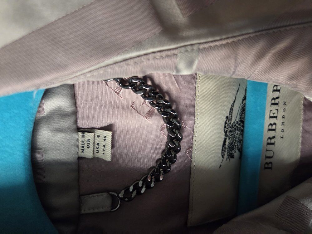 GooglePayBeautiful Burberry Raincoat (2009 collection) - Mint condition Size 6R (gray/plum color) Great piece to add to your wardrobe collection! (also selling matching Hunter Rainboots if you wear a size 7 women's shoes, we can bundle).
