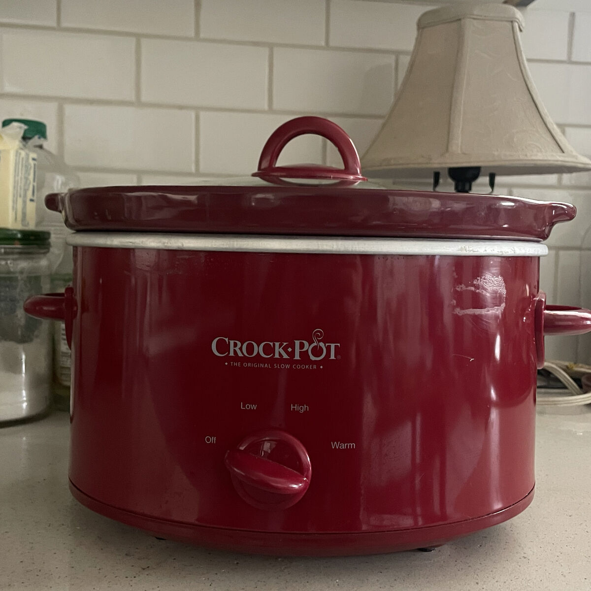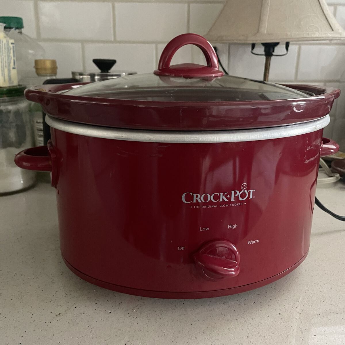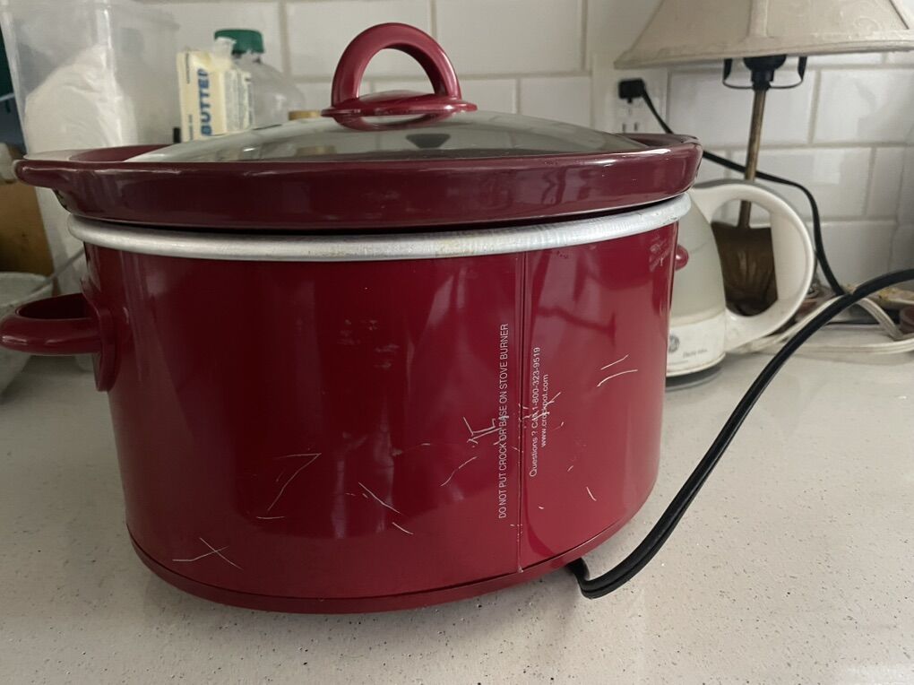 Red 4qt crockpot-works perfectly My dad probably used it twice in his RV Has some scratches on the back from storage Removable crock, easier to clean! Great slow cooker