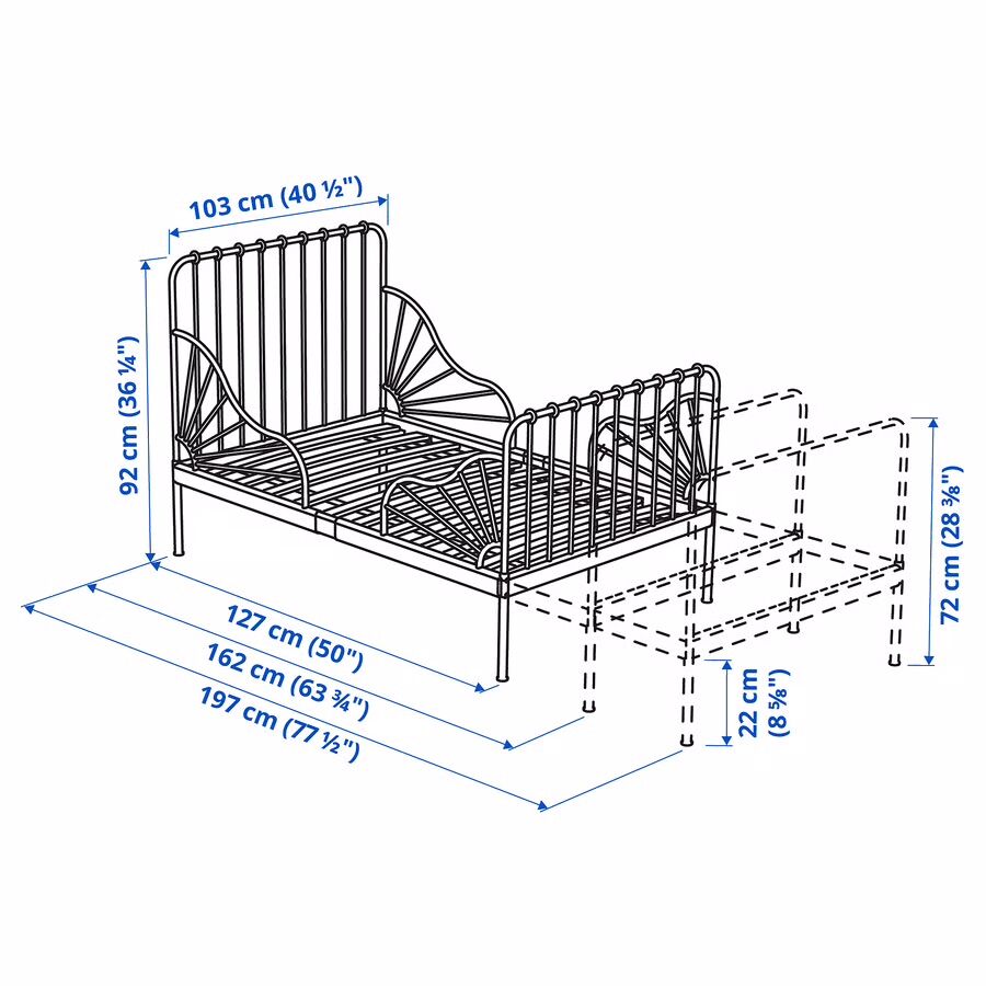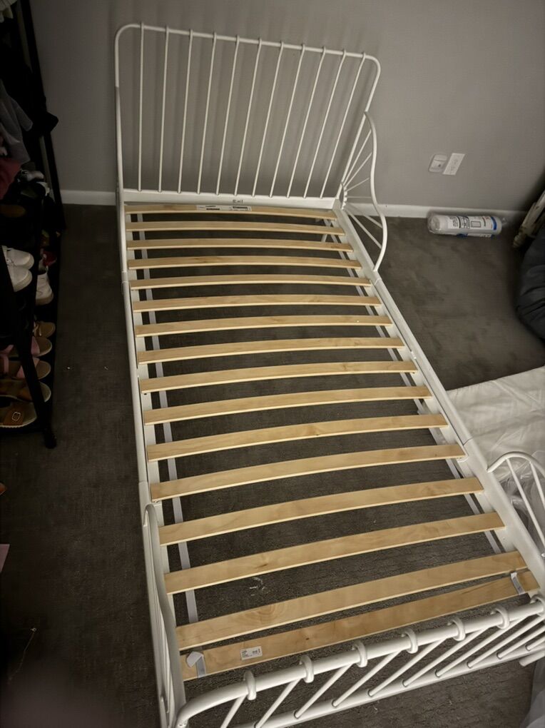 VenmoThis is the minnen bed from ikea that has 3 different lengths to grow with your child. Low to the ground to easy to get in and out of. In new condition, just my kids have grown out of it. Comes with the mattress that is 3 pieces that you can add depending on the length you set it at. Easy to disassemble for transport. Asking $100 OBO Cash or Venmo only