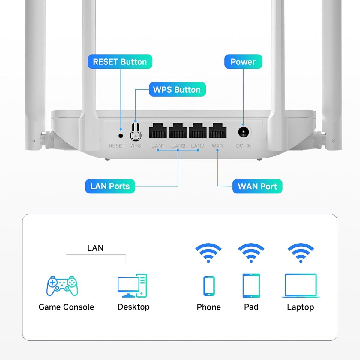 Dual Band Wireless Router: Dual band router upgrades to 1200Mbps high speed internet (300mbps for 2.4GHz plus 900Mbps for 5GHz), reducing buffering and ideal for 4K stream Full Gigabit Ports: Gigabit Router with 3 Gigabit LAN ports, ideal for any internet plan and allow you to directly connect your wired devices 3 Working Modes: Supports Router Mode, AP Mode and Repeater Mode. Router/AP Mode is ideal for converting wired networks into wireless networks, Repeater Mode works to amplify and extend WiFi coverage of existing wireless networks Wide Coverage WiFi Router: High Gain Antennas Expanded Wireless Coverage - 4 x 5dBi omni-directional antennas equipped with Beamforming technology extremely improve wireless coverage on all WLAN networks, which means you can enjoy incredible wireless coverage and reliability in your home MU-MIMO technology: 5GHz band allows high speeds for multiple devices simultaneously, allows the wireless router to communicate with multiple end devices at the same time Easy to Setup: The browser-based setup provides clear visual instructions of the entire process so you can get online in minutes. Set separate guest access to keep the network safe Extremely Compatible: Works with all internet service providers, such as AT&T, Verizon, Xfinity, Spectrum, RCN, Cox, CenturyLink, Frontier, etc. ( a modem is required for most internet service providers)