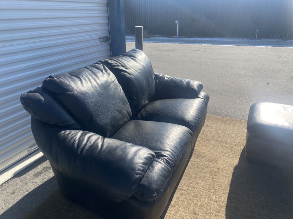 High-quality Dan Skinner custom leather chair with matching ottoman in like-new condition. This is real leather, not bonded or faux. Extremely comfortable, heavy, and well-built — far better quality than Ashley, RC Willey, or IKEA.
