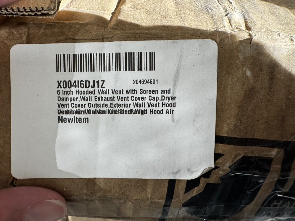 Venmo6-Inch Hooded Wall Vent with Screen & Damper Brand new.