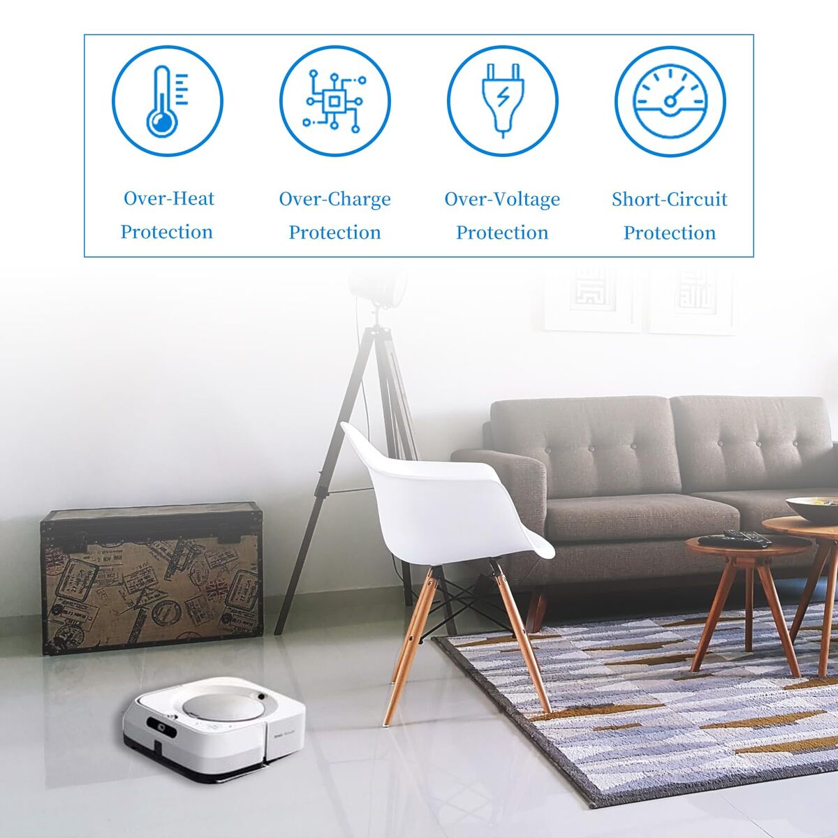 Replacement Battery TypeVoltage:10.8V; Capacity:1775mAh/19Wh. Compatible P/NABL-C Series 3INR 19/65. Compatible ModelsFor iRobot M6 Braava Jet M6 Ultimate Robot Mop 3INR 19/65. DG QualityGrade A cells mitigate the risk of battery leakage and maximize output stability. Built-in circuit protection, enhances safety of usage and extends battery life. 175713 1-6-26 00.1 rt38