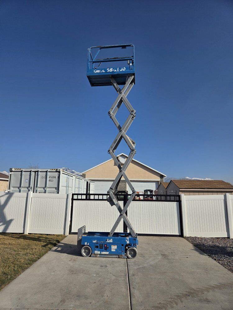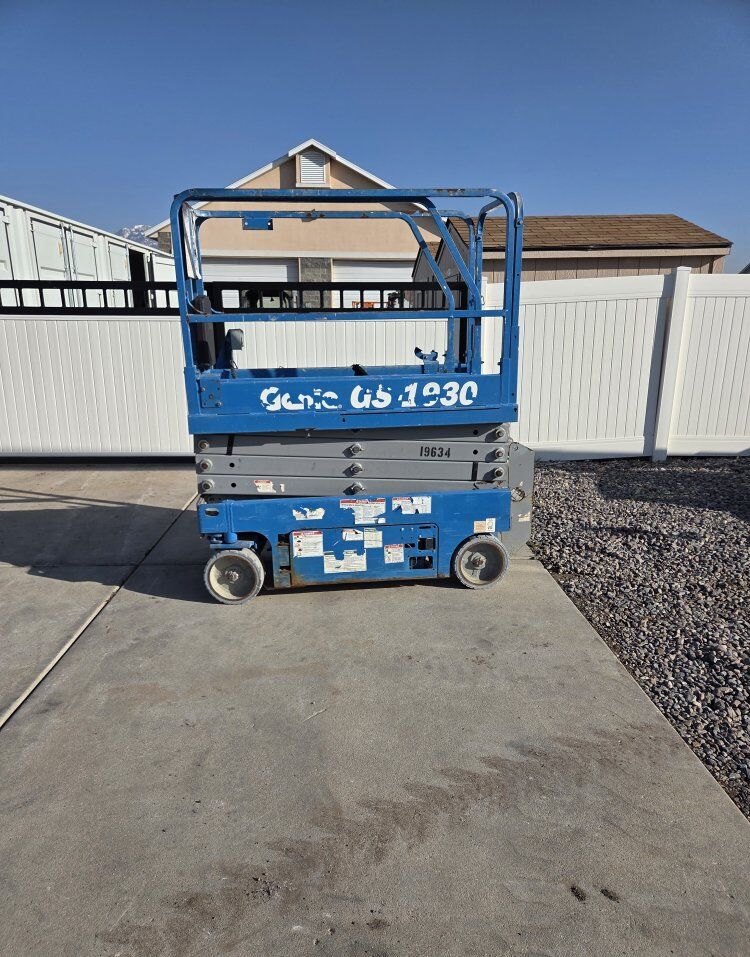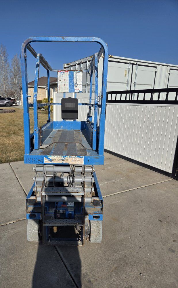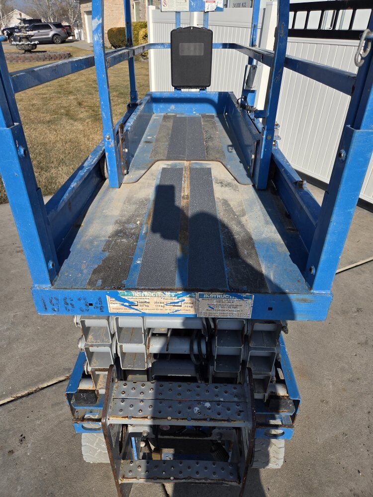 Genie GS-1930 Scissor Lift with 223 hours. 19ft platform height, 25ft max working height, platform extenction, power to platform, 500lbs max platform lifting, non marking tires, lift weight 3200lbs