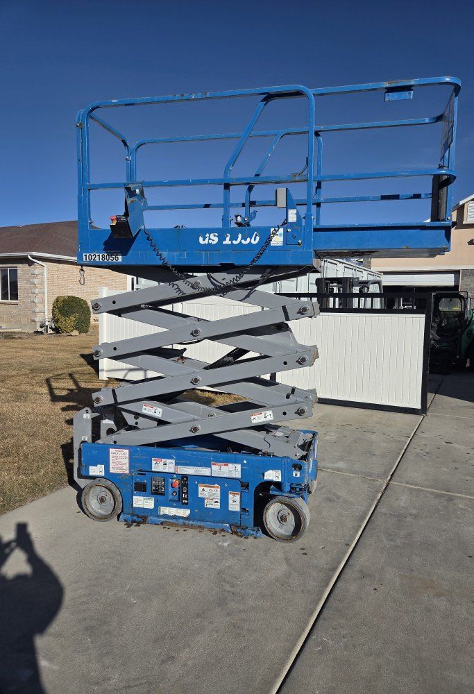 Genie GS-1930 Scissor Lift. 19ft platform height, 25ft max working height, platform extenction, power to platform, 500lbs max platform lifting, non marking tires, lift weight 3200lbs