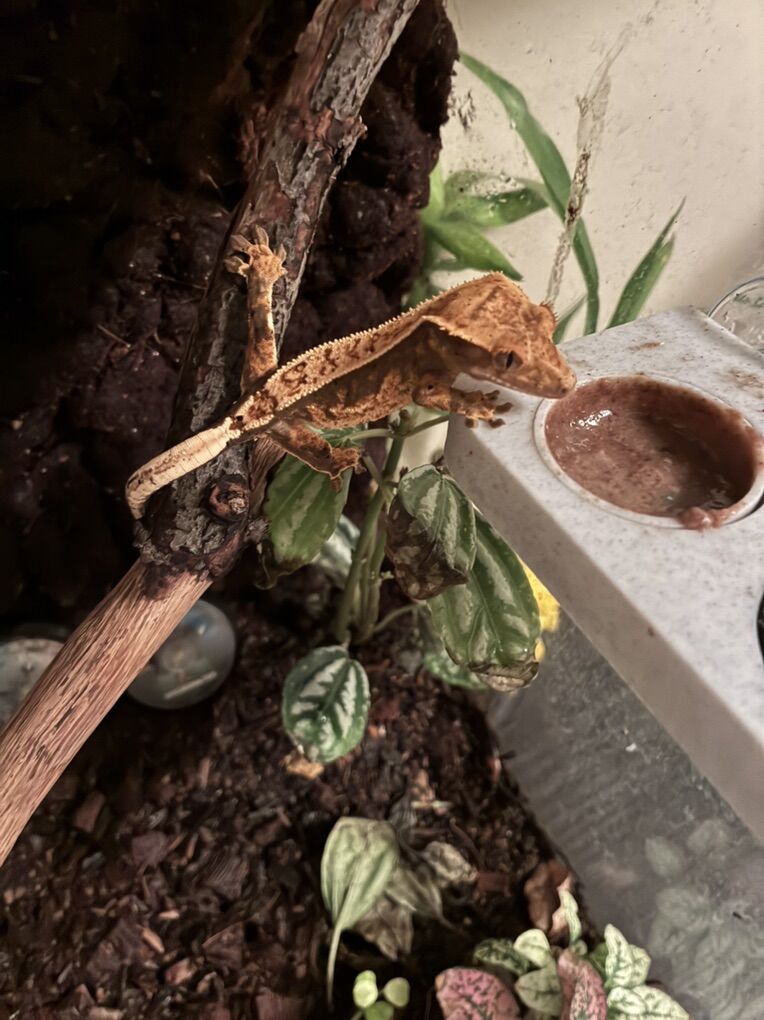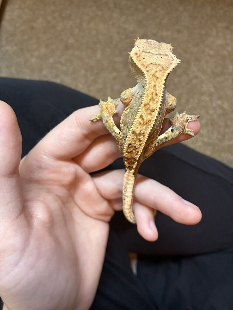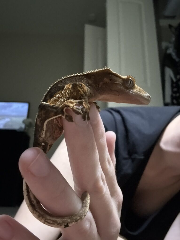 ZelleI believe it’s a female! It’s a juvenile crested gecko. She super sweet and a big gal. I bought her in one of her and she has grown a significant amount in comparison.