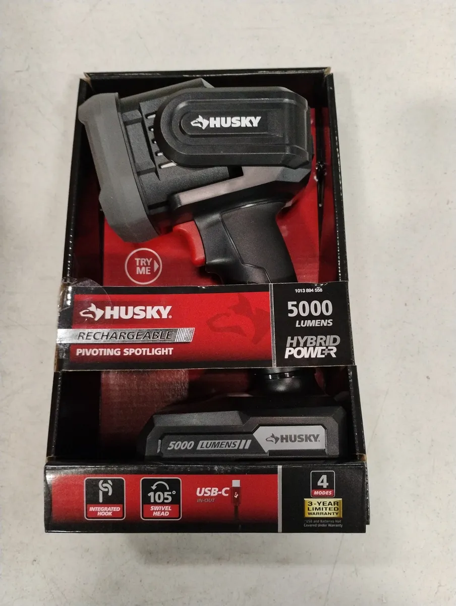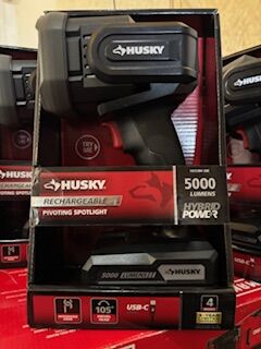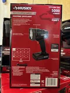 The 5000-lumen hybrid power spotlight delivers a brightness of 5000 lumens on its high setting, providing excellent illumination for a variety of situations. With a runtime of 1.5 hours, it ensures reliable performance when you need it most. This versatile spotlight can be powered by a rechargeable battery for convenience, but it also has the option to use four AA alkaline batteries in case of emergencies, ensuring you're never left in the dark. Additionally, it doubles as a power bank, allowing you to charge your devices while on the go. Whether you're camping, working in low-light conditions, or facing unexpected power outages, this spotlight is a reliable companion. Color: Black/Gray. 146365 12-4-25 00.7 rt30