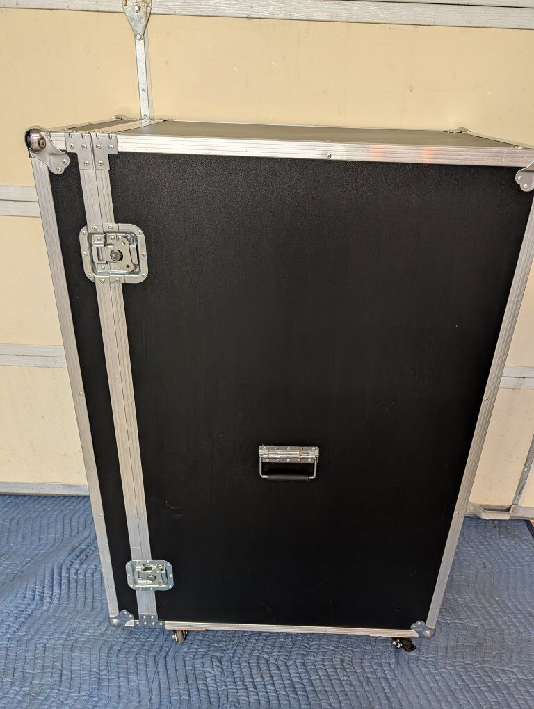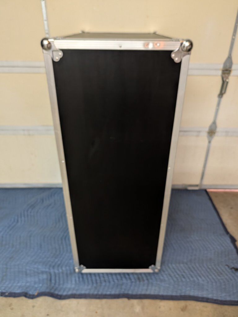 VenmoHeavy duty professional Road or Flight Case. Music Black case with aluminum sides and steel balls corners.Heavy duty hardware. Twisted latches. 4 casters for ease of transport. Provides robust protection for Professional gear. Audio visual equipment, musical instruments for touring or shipping. Outside measures 4 ft ht 18.5 width . 2 ft 8 inches Depth . Inside 1/2 foam. 43.5 ht. 16.5 width. 27.5 depth. . Excellent condition ready to rock. $250.00 Cash or Venmo 385 250 4393