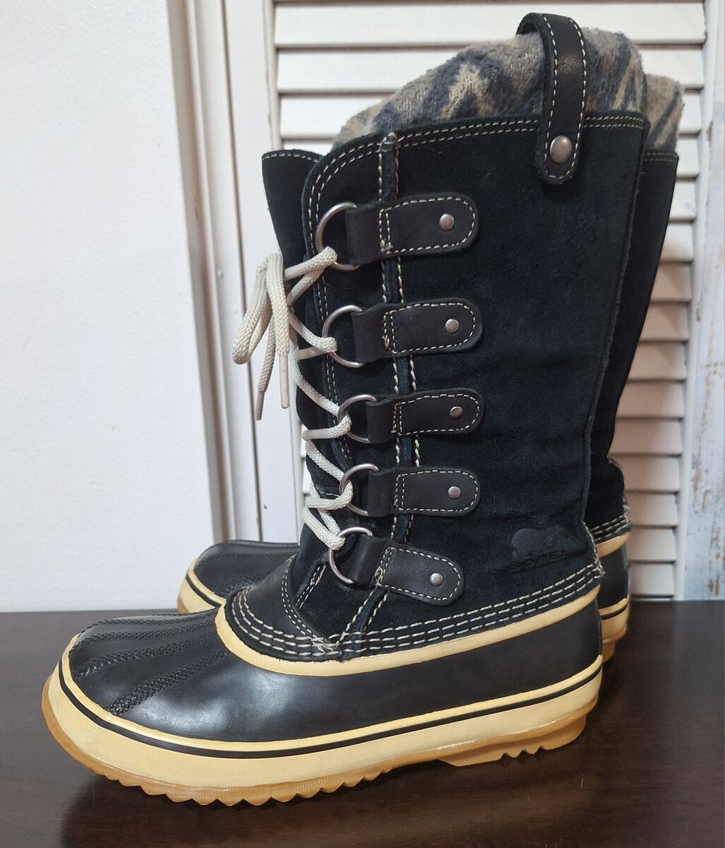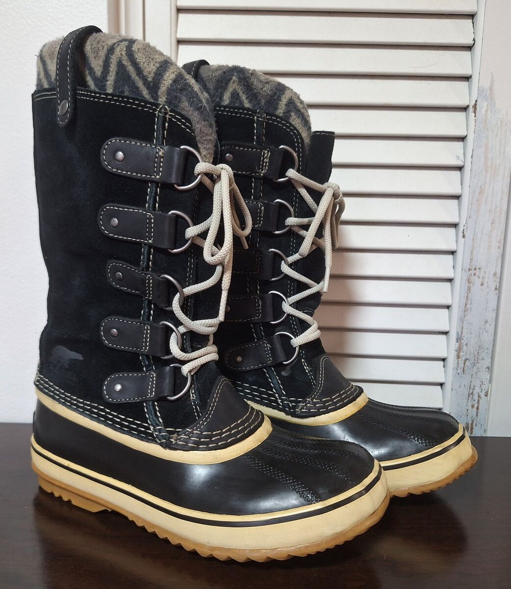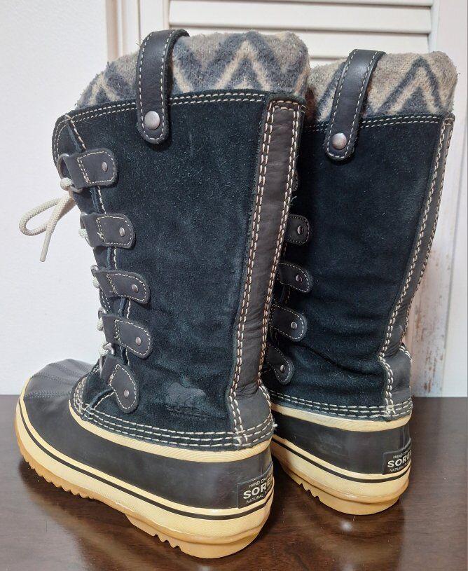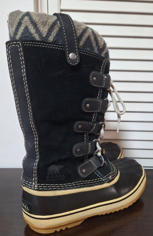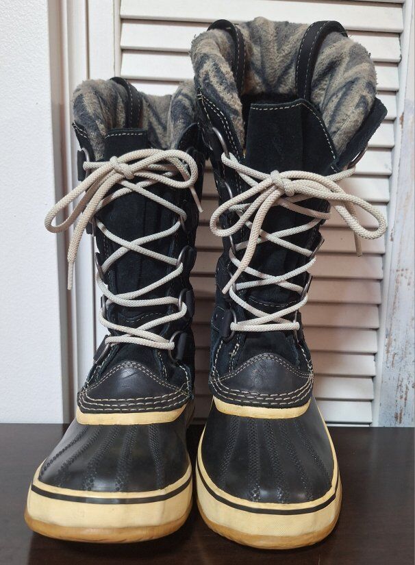 CashAppStay toasty warm with this nice pair of Sorel Joan of Arctic Knit II Black Suede Boots. They are in US size 7.5. A very stylish and versatile choice for the winter season. With a mid-calf shaft style and lace-up closure, these boots offer both comfort and durability. Comes from a smoke and pet free environment. Lot of life in these boots. Thanks for looking!