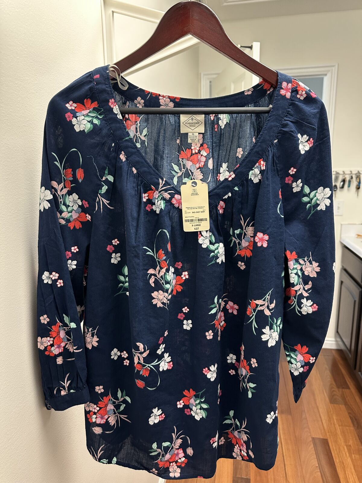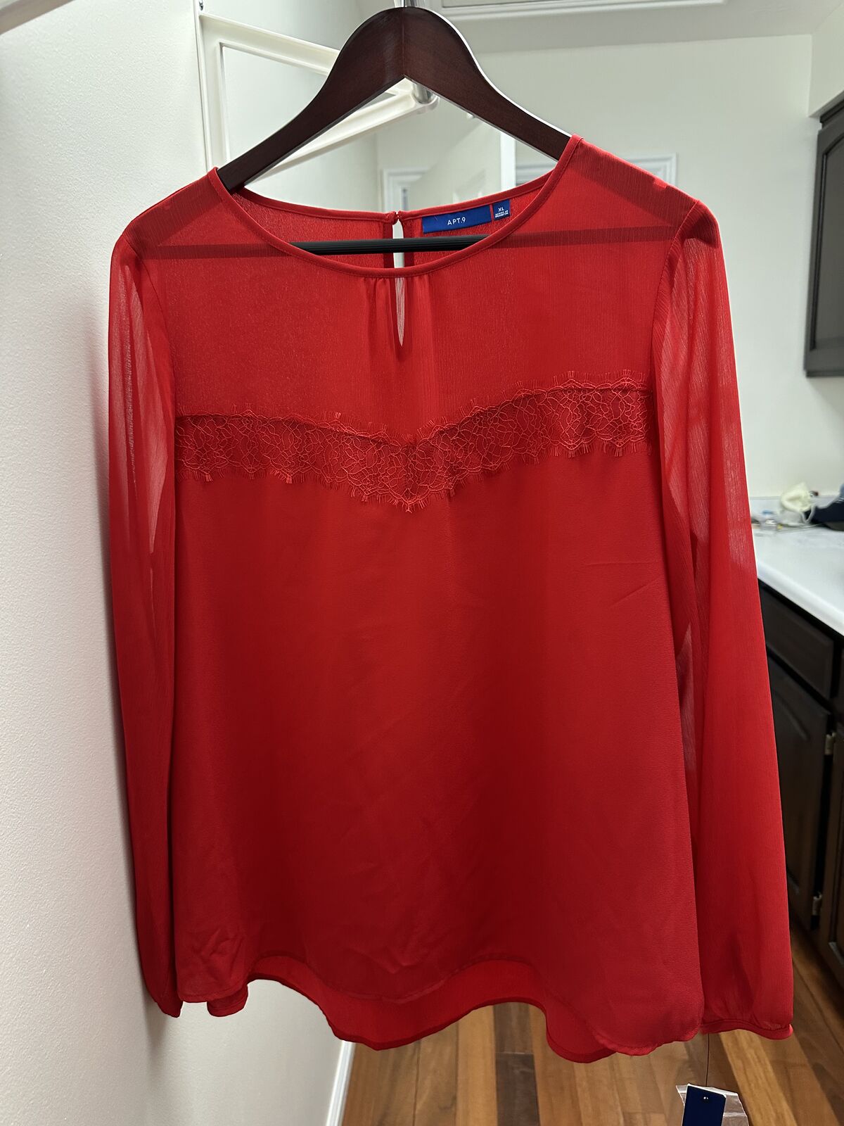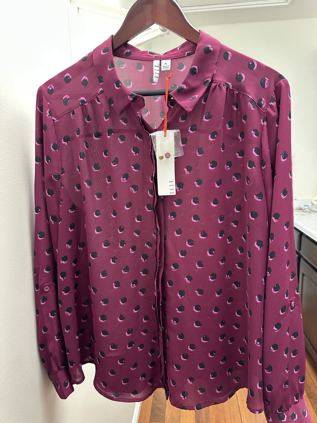 6 Brand New with tags, dress blouses. Women's XL size. $15 per blouse or $75 for all. Brand Name designer clothing. Perfect for weddings, cruises, church, business, or any dress-up occasion. MSRP on the tags is $40 or more for each shirt.