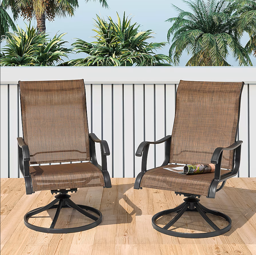 VenmoBring Nuu Garden Outdoor 2-Piece Swivel Chair Set home to add an extra touch of craftsmanship and style. The minimalist look showcases it is distinctive and utility. It features a metal frame for durable functionality and breathable textilene fabric for the outdoor vibe or blends seamlessly with your indoor decor. With a practical swivel and gentle rocking, this chair provides a classy touch and offers outstanding functionality to unlock more relaxing possibilities. Place it in your dining area or entertainment space. The chair will ensure that perfect last touch you need to set the tone in the contemporary space of your choice.