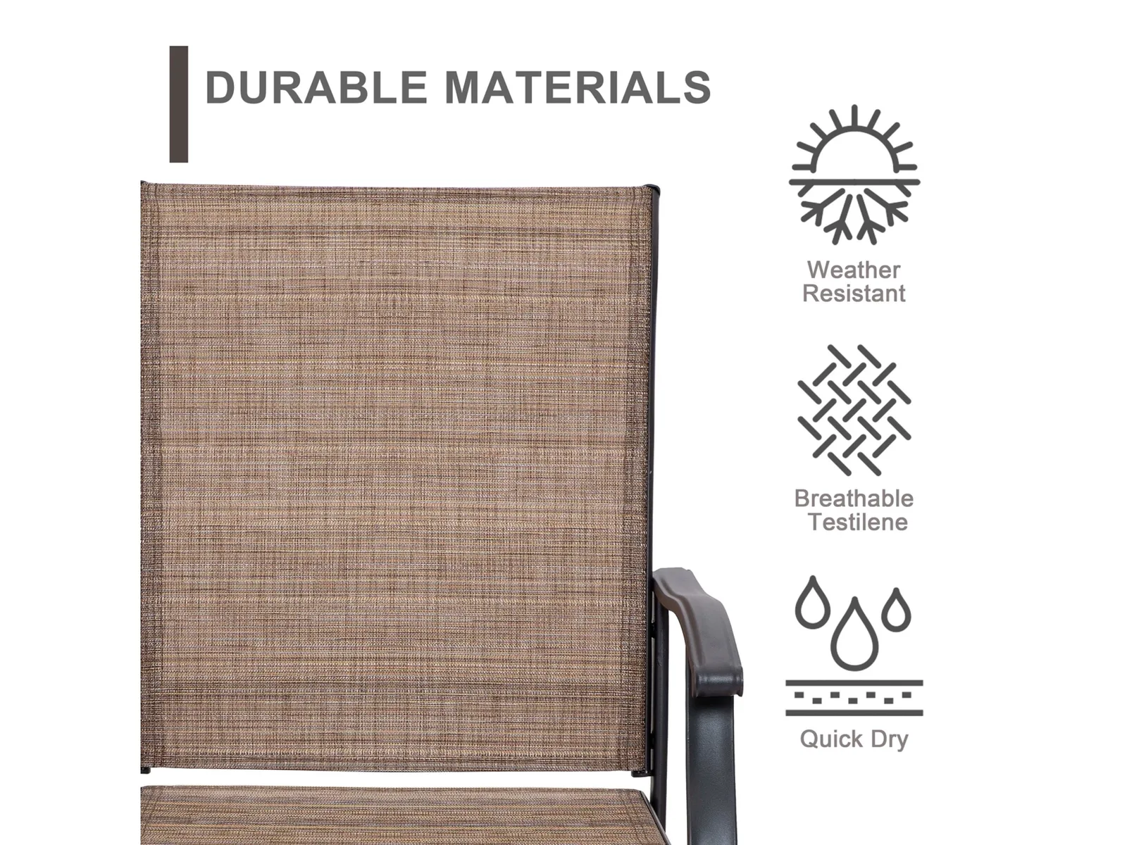 Breathable Textilene Fabric: Breathable and quick dry textilene fabric with UV and abrasion resistance maximizes comfortable level and withstands the outdoor elements for long-lasting use.