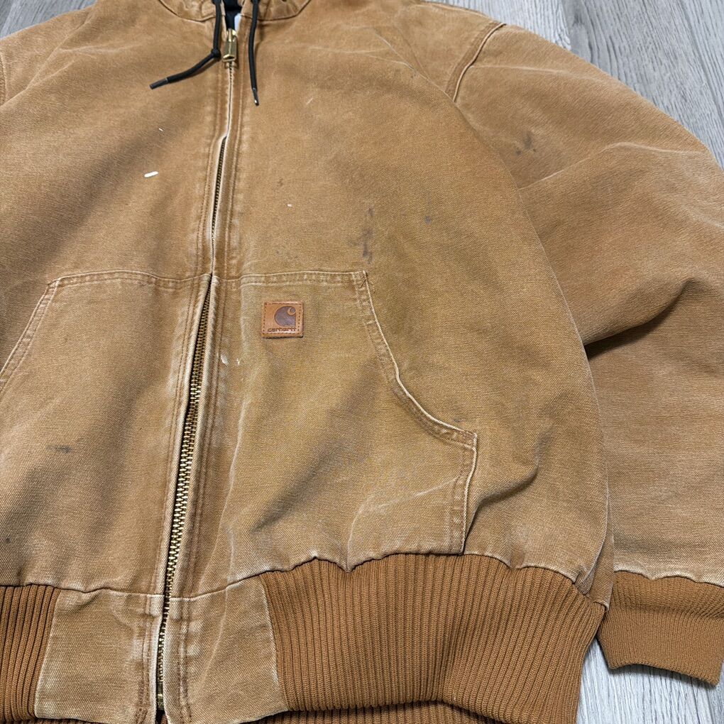 ApplePayTan/Brown Carhartt Jacket with Hood size: L Tall, length:28” pittopit:26” condition: like new, minor markings