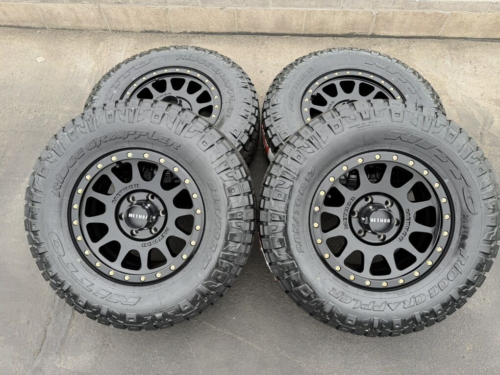 Wheels are 17” Method 17x8.5 width +25 offset 6 lug 6x5.5 lug pattern