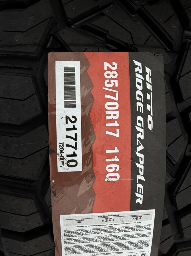 Tires are Nitto Ridge Grapper 285/70R17 which is roughly 33x11x17 standard load rating
